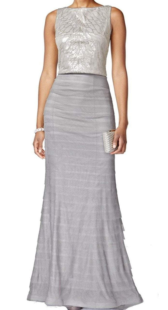 | Details: | Sequin Tulle (100% Polyester) Lining (100% Polyester), Sleeveless, Popover, Back zipper, Embellished bodice, Tulle, Sheath skirt |