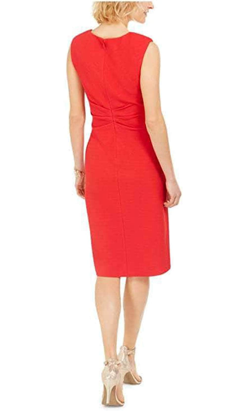 Bask in the charming beauty of this exquisitely made Adrianna Papell AP1D103907 creation. Perfectly sculpted with tailoring seams on a vibrantly toned knit silhouette, this stunner features a v-neckline on a sleeveless bodice. Accented with ruching at the full back for that perfect fit, this piece parades a tie-accent at the waist. The sheath skirt tailors into a knee length hemline. Regale an alluring style in this Adrianna Papell masterpiece. Couture Candy is committed to provide the very best when it comes to dresses for every occasion, and we are delighted to have Adrianna Papell on our side to aid us in delivering exquisite dresses for various occasions that are sure to make heads turn. Models are wearing the Hot Tomato and Lavender Lake colors.