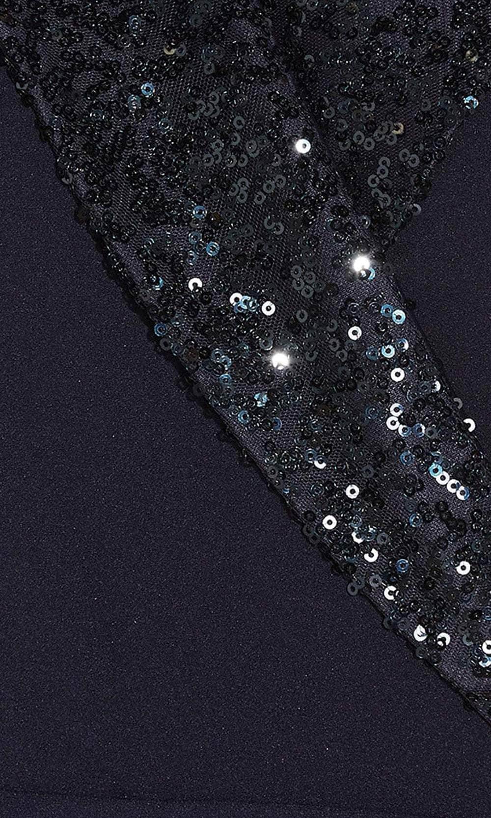 | Details: | Sequin Shawl Lapel, Surplice V- Neckline, Long Sleeve, Back Zipper, Short Dress |