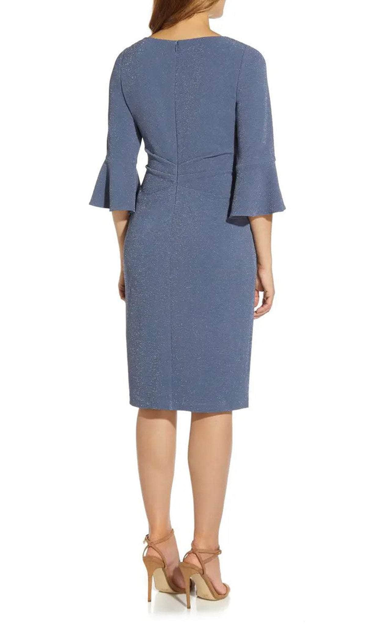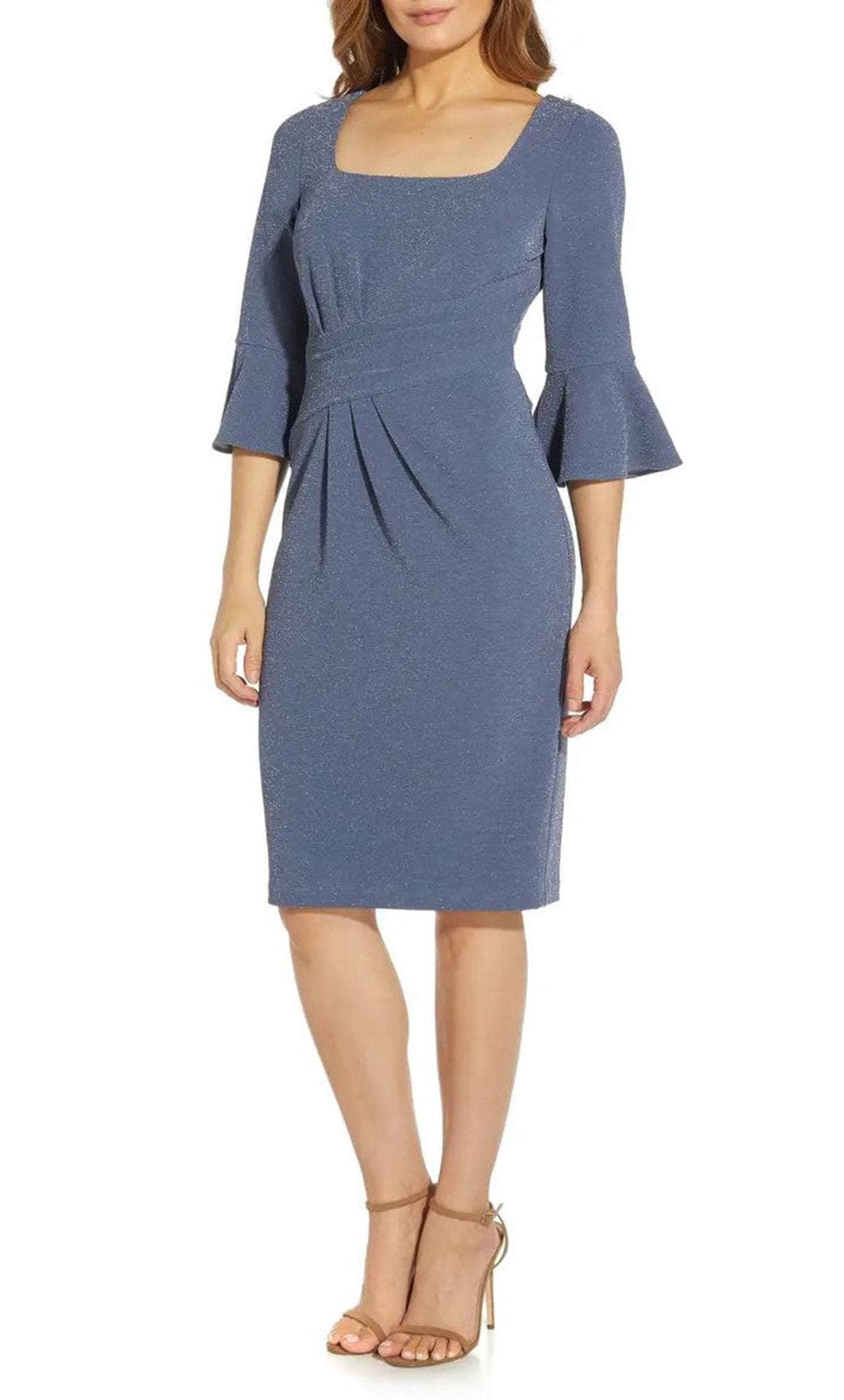 Get ready for everyone to stop and stare when you show up in this Adrianna Papell AP1D104701. The enclosed back adds a touch of sophistication while the ruched front accentuates your curves. With a short length and square neckline, this dress is perfect for any occasion. Made with a natural sheath silhouette, this dress hugs your body in all the right places. Bloom with loveliness in this lovely Adrianna Papell AP1D104701 creation. Model is wearing Steel Blue color.