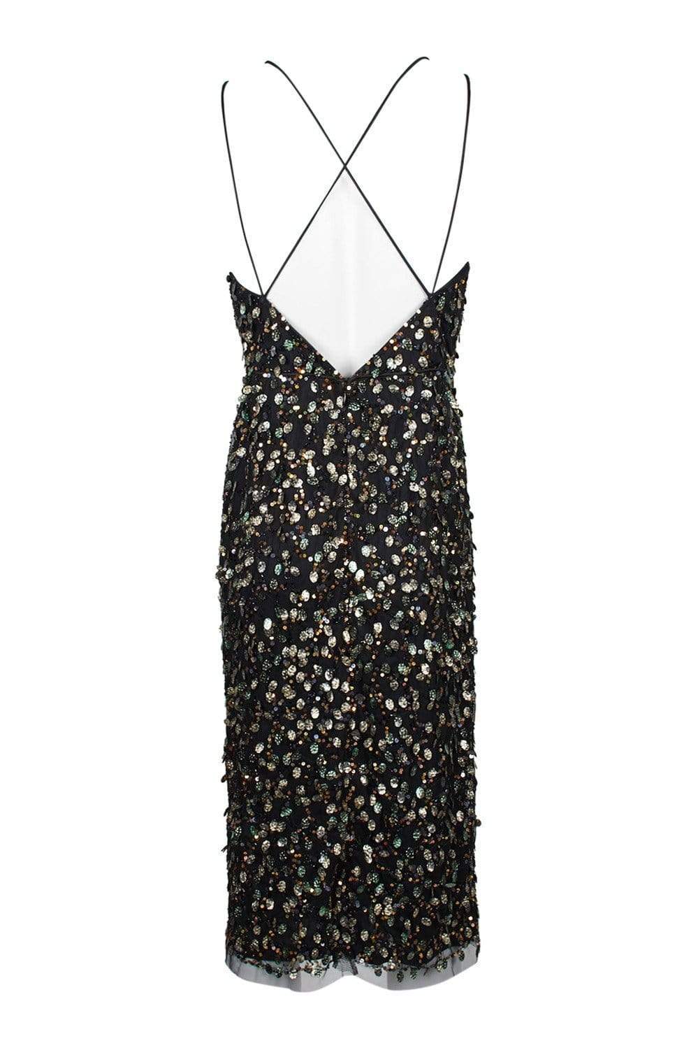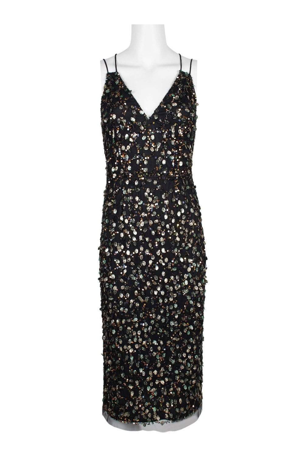 Reveal hidden charms in this lovely dress by Adrianna Papell AP1E205373. This knee length dress glitters for the special occasion with its lavish embellishments. It is tailored in a sleeveless, V-neckline with dual straps connecting to the cross strapped back. The skirt forms a fitted silhouette and runs at knee length hem. Exude a charm that is meant to mesmerize the elite crowd in this gorgeously decadent Adrianna Papell dress.