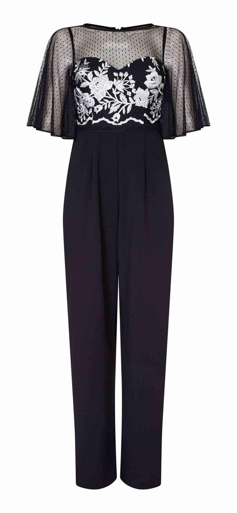| Details: | Flutter sleeves, Floral embroidery, Leg pants, Pockets, Back zipper |