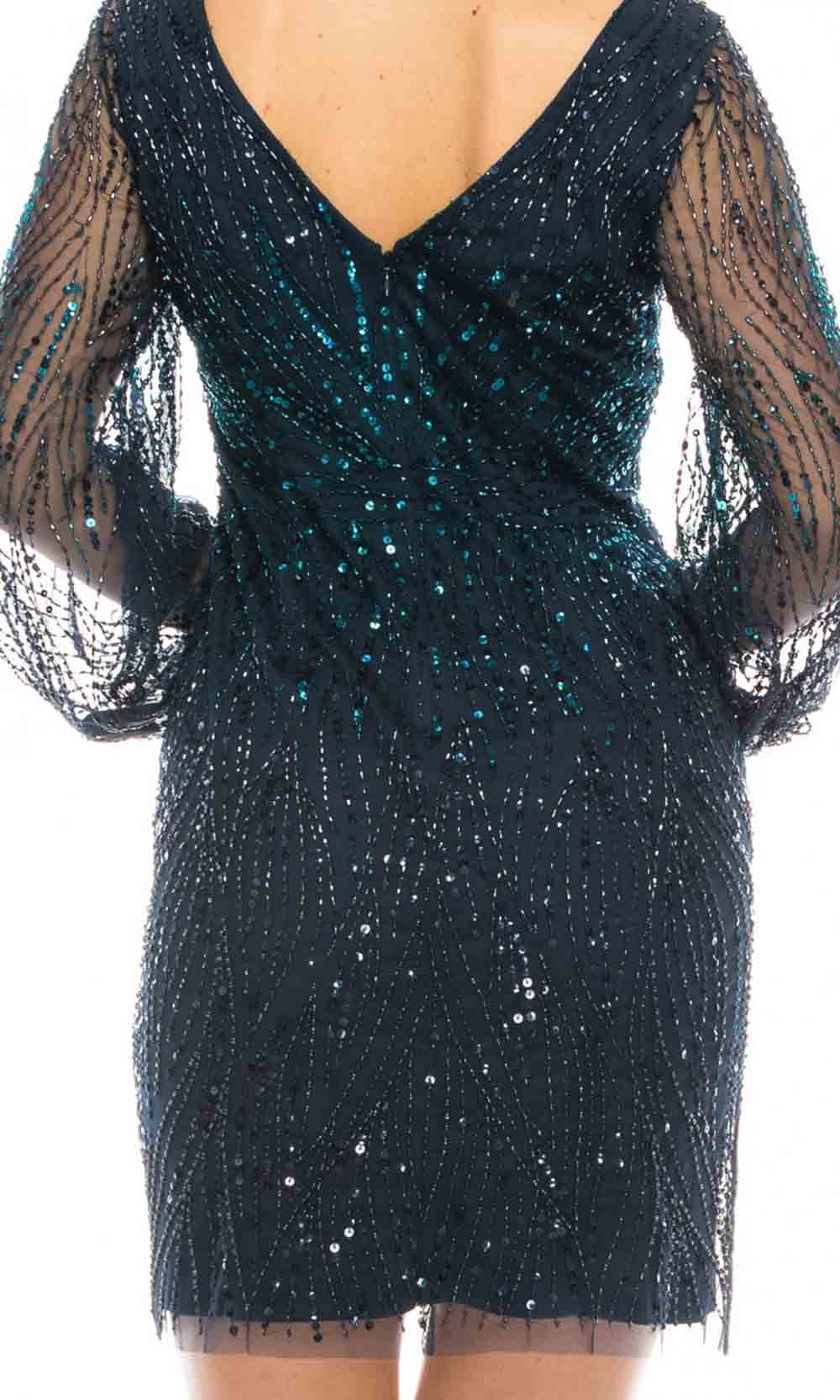 Be the lady of the night in this Adrianna Papell AP1E206864. This cocktail dress is crafted in beaded mesh that features a V-neckline and V-back, sheer bishop sleeves with elastic hems. Striking beading in the dress will surely make you stand out. This Adrianna Papell style is a sure standout on your next evening social event.