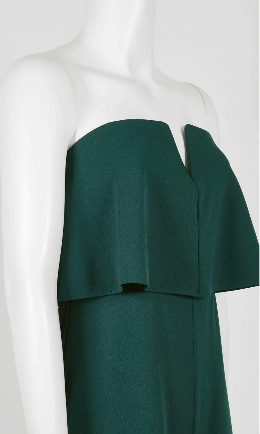 | Details: | Crepe, Strapless, V notched neckline, Popover, Hidden back zipper, Lined |
