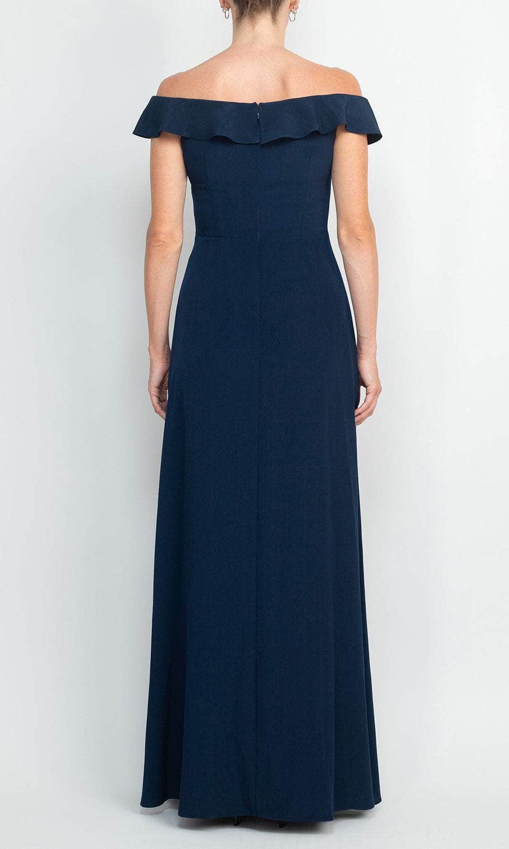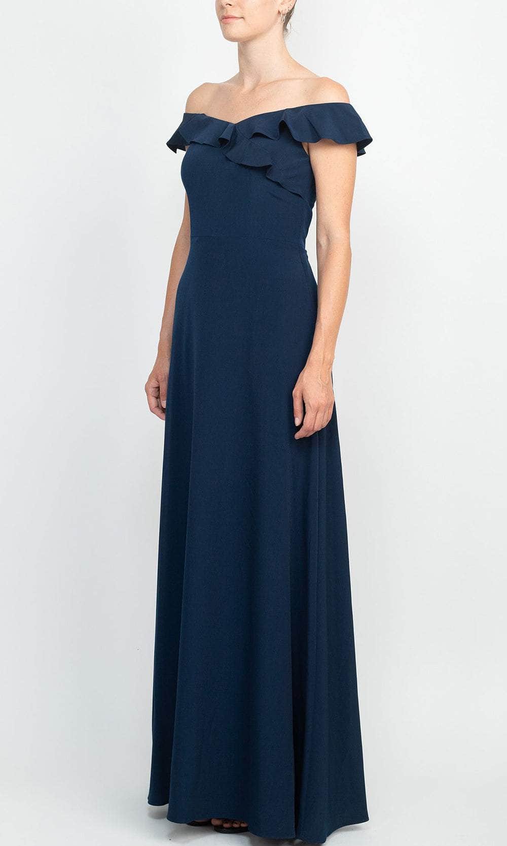 Dare to flaunt those gorgeous curves in this eloquent Adrianna Papell AP1E208290 creation. Adorned with sculpting seams flattering the feminine form, this beauty starts off with an off shoulder neckline with a draping ruffle. Designed with a midrise back and a concealed zipper closure, the slim fitted A-line skirt cascades into a floor length hemline. Don a style that will flaunt your stylish flair in this exquisitely rendered Adrianna Papell masterpiece. Model is wearing the Midnight color.