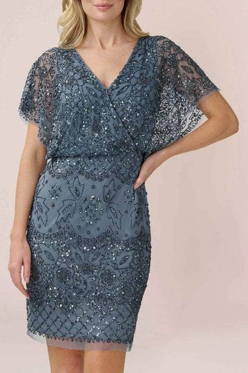 Grab attention with the Adrianna Papell AP1E209322 Dress, a captivating blend of modern style and timeless elegance. This exquisite dress features short dolman sleeves that offer a relaxed yet stylish silhouette. The blouson design adds a touch of effortless chic, while the embellished mesh fabric provides a glamorous shimmer that catches the light beautifully. The back is secured with a discreet zipper closure, ensuring a perfect fit. Ideal for any special event, this Adrianna Papell AP1E209322 creation combines luxury and grace, making it a standout choice for an unforgettable look. Model is wearing Dusty Blue color.