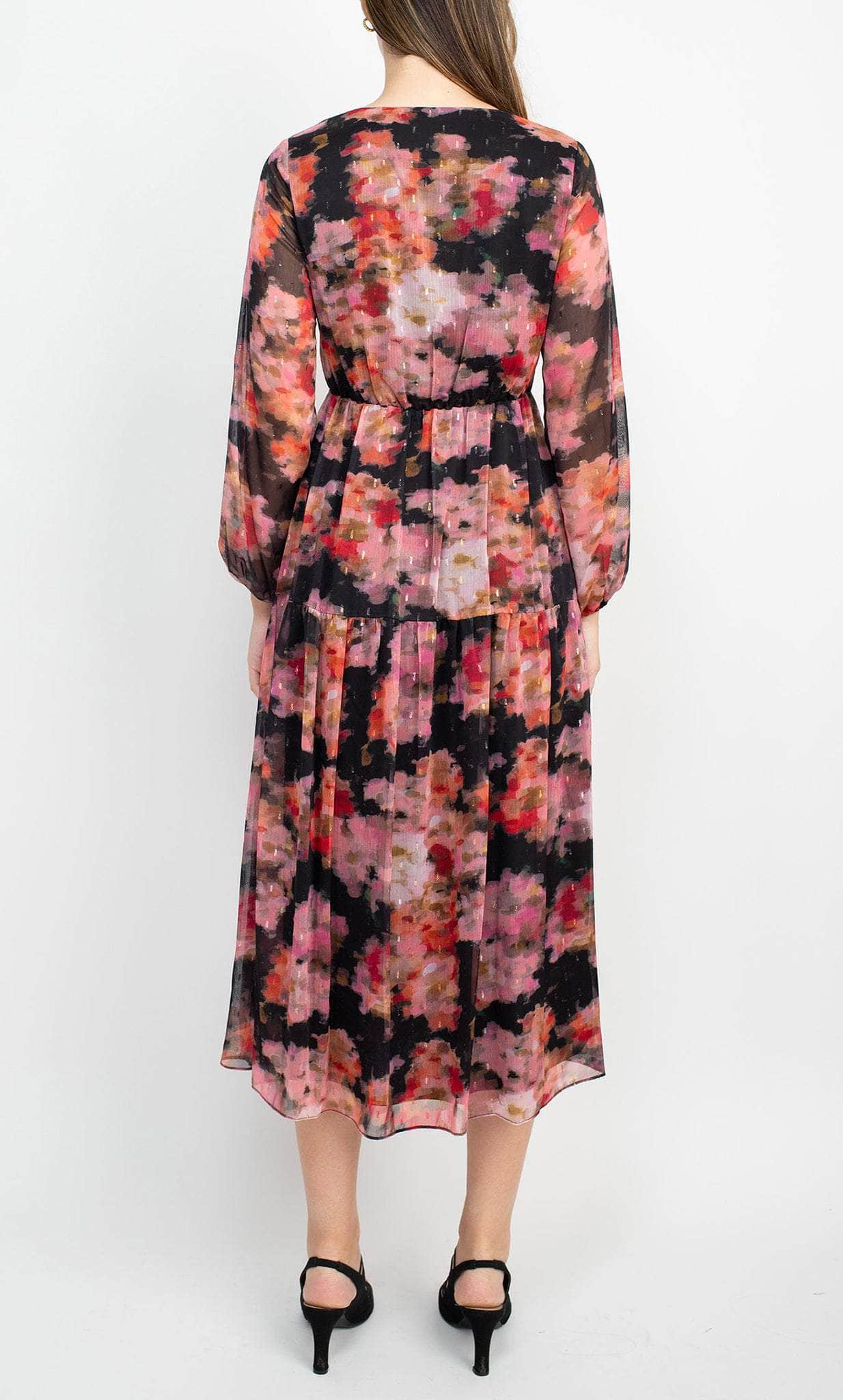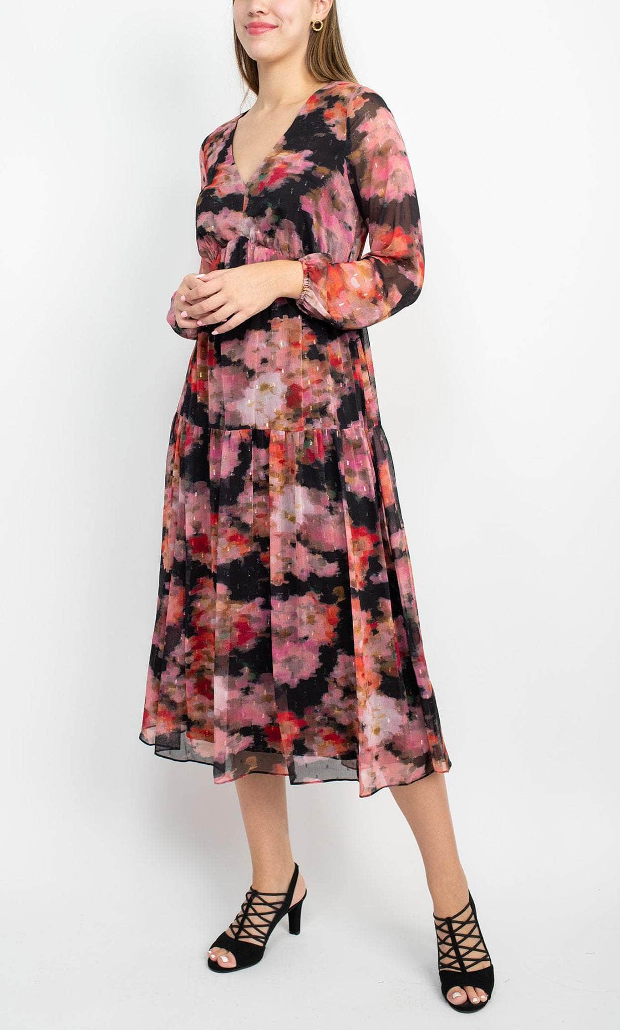 Make everyone swoon when you showcase timeless beauty in this Adrianna Papell AP1E209660 creation. Designed a lined silhouette with tailoring seams, this stunner crafts a semi sheer overlay of artsy printed chiffon. This ensemble graces with a v-neckline and sheer long bishop sleeves with elastic cuffs. Designed with a full back and a nipped empire waist, the skirt flows into a tier styled A-line design with a tea length hemline. Show off an elegance that will become unforgettable in this Adrianna Papell masterpiece. Model is wearing the Pink color.