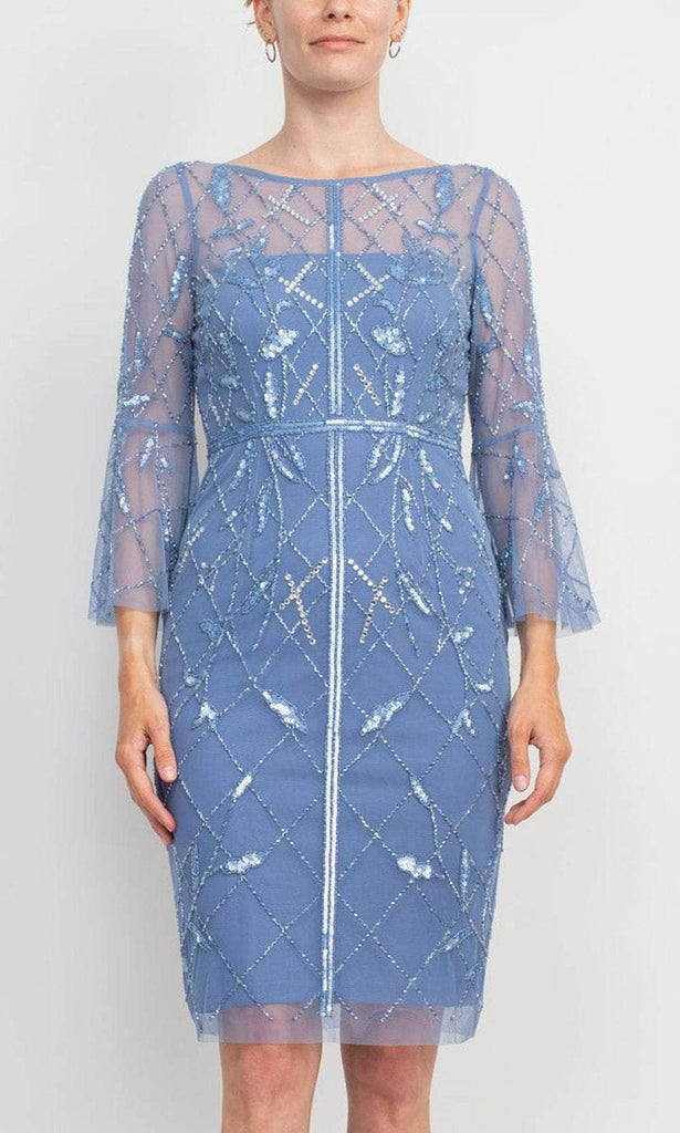Exquisite in its craft and timeless in its beauty, the Adrianna Papell AP1E210499 is the ultimate dress for special social occasions. Crafted from a sheer beaded mesh, the midi-length dress features an illusion yoke and circular sleeves for an effortlessly stylish look. With its boatneck design, this dress combines elegance and sophistication, perfect for those looking to make a memorable entrance. Put the finishing touches to your special night with the Adrianna Papell AP1E210499. Model is wearing the French Blue color.