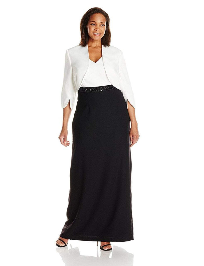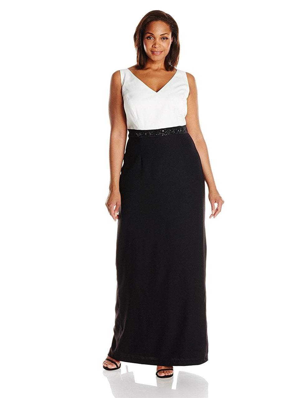 Inspire the crowd to adore your classic taste in this stylishly contrast Adrianna Papell 81907701 creation. Flaunting a seam-sculpted bodice made of crepe, this sophisticated piece presents a v-neckline and full back. Embellished with an ebony beaded waistband, the sheath skirt flows from every curve with a back slit for movement and finished at a full-length hem. Be understatedly elegant in this sophisticated Adrianna Papell masterpiece.