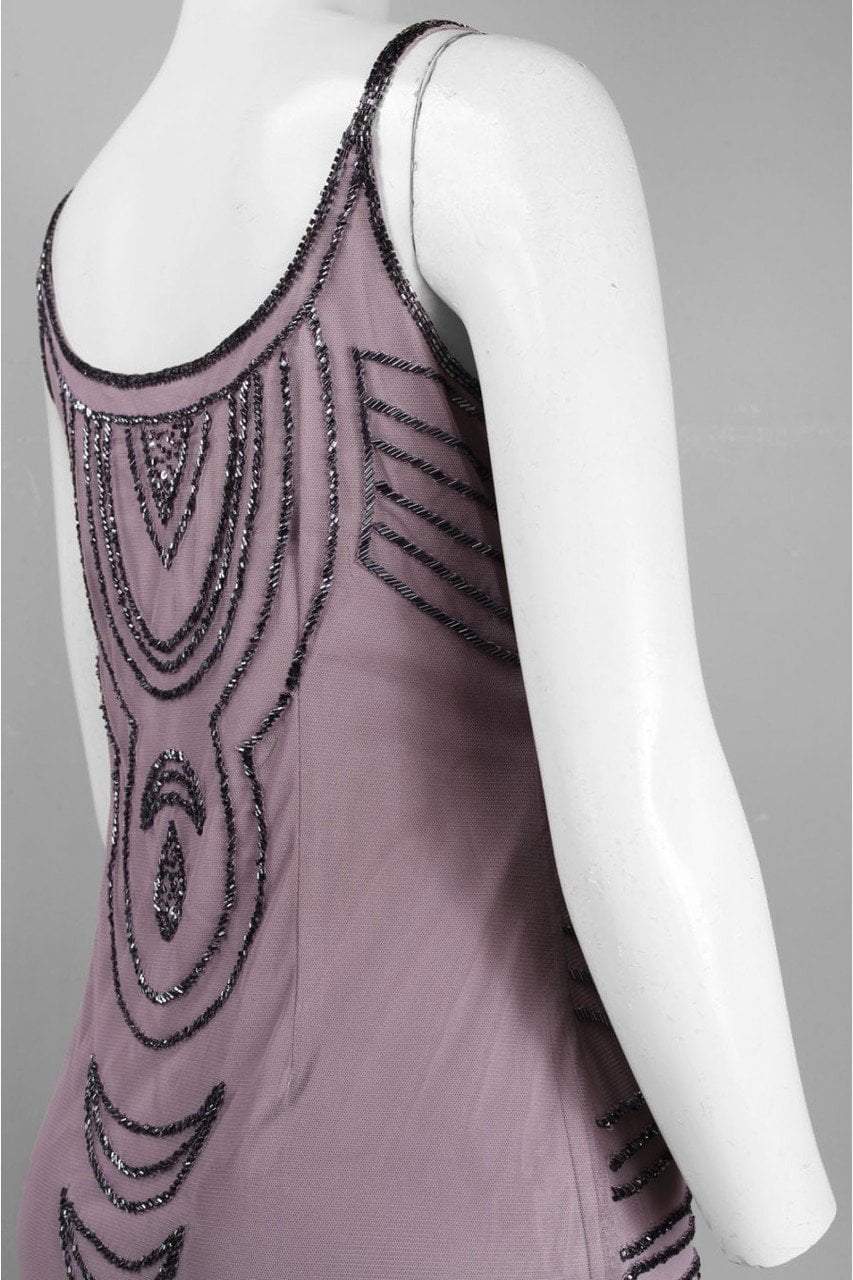 Revel in your passion for the creative in this gorgeously embellished Adrianna Papell 041906220 creation. Fascinatingly beaded with intricate geometric designs on a mesh fabric, this stylish piece displays a scoop neckline and open back with slim ornate straps as support. Flaunting a toned lining, the sheath silhouette flows as it molds every single curve down to a modest short hem. Mesmerize as you glide to any special event in this dazzling Adrianna Papell masterpiece.