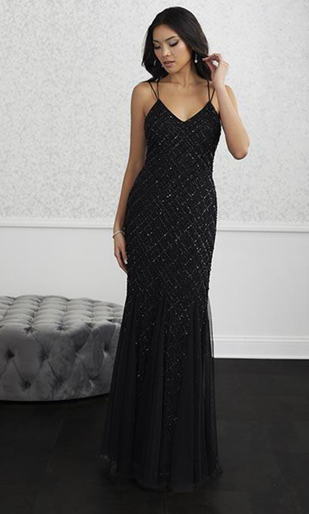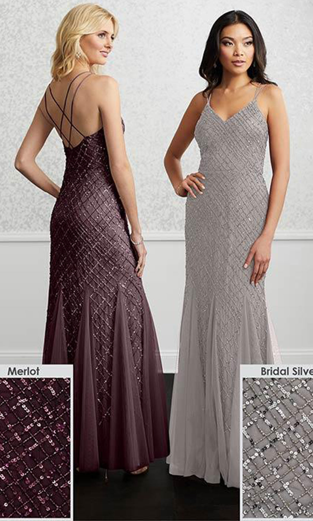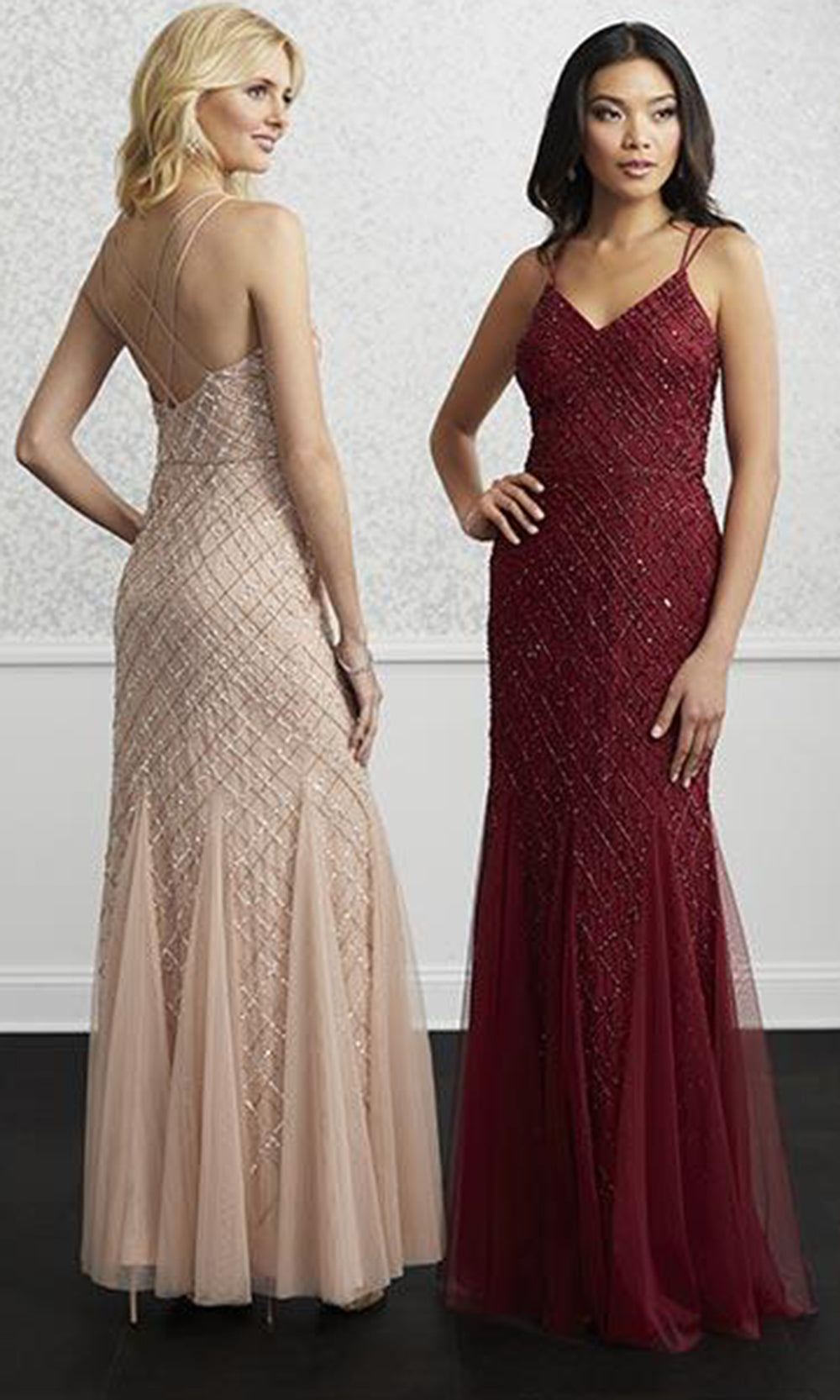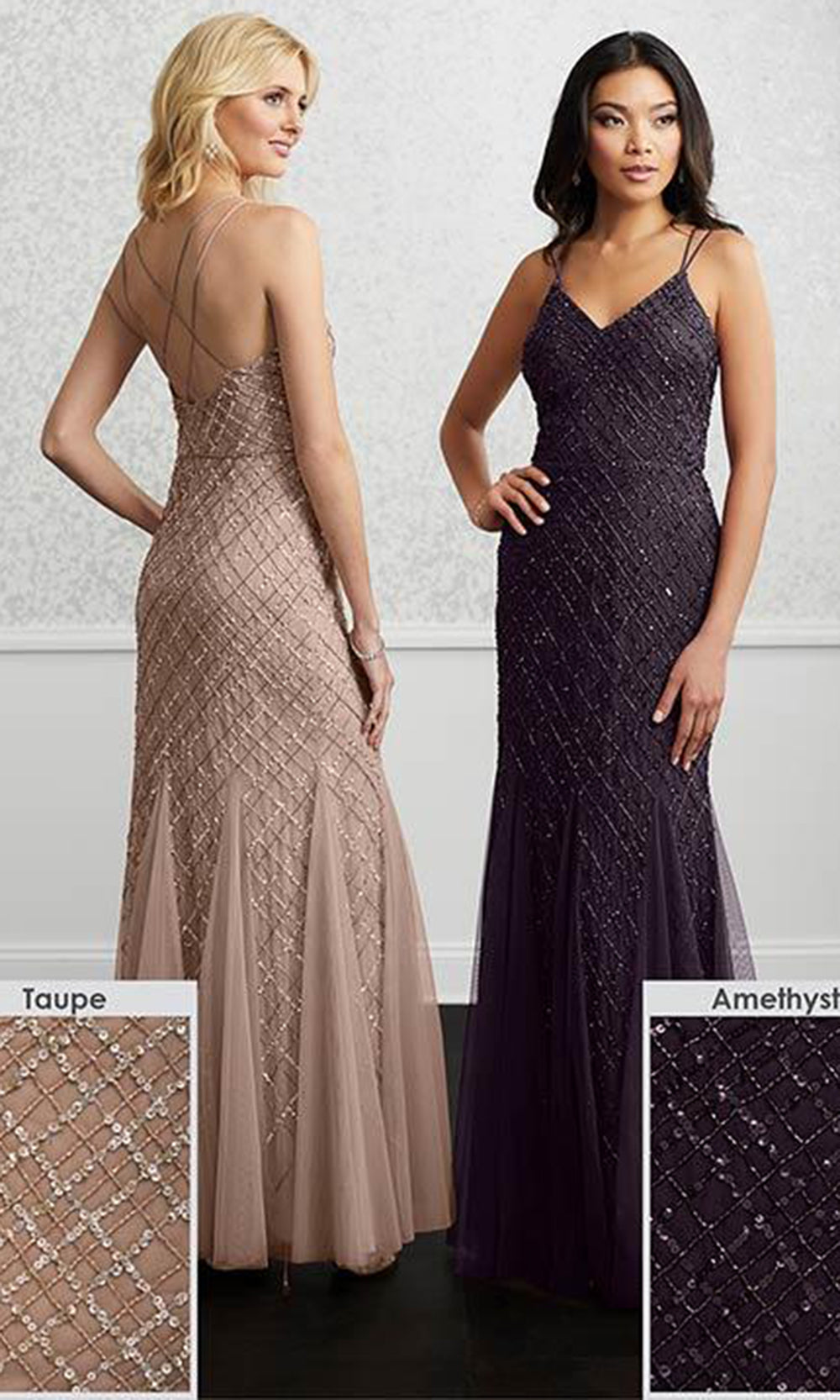 | Details: | Double Spaghetti Straps, Beaded Pattern, Double Crisscross Strapped Back, Back Zipper Closure, Mesh Godets, Full Length Hem |