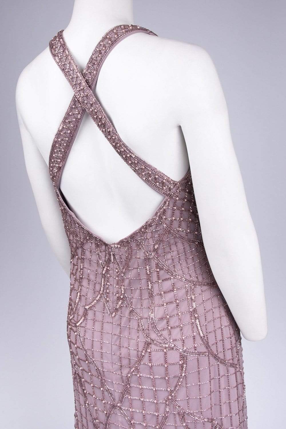 | Details: | Beaded Mesh (100% Polyester) Lining (100% Polyester), Crisscross strapped back, Back zipper closure, Fully lined |