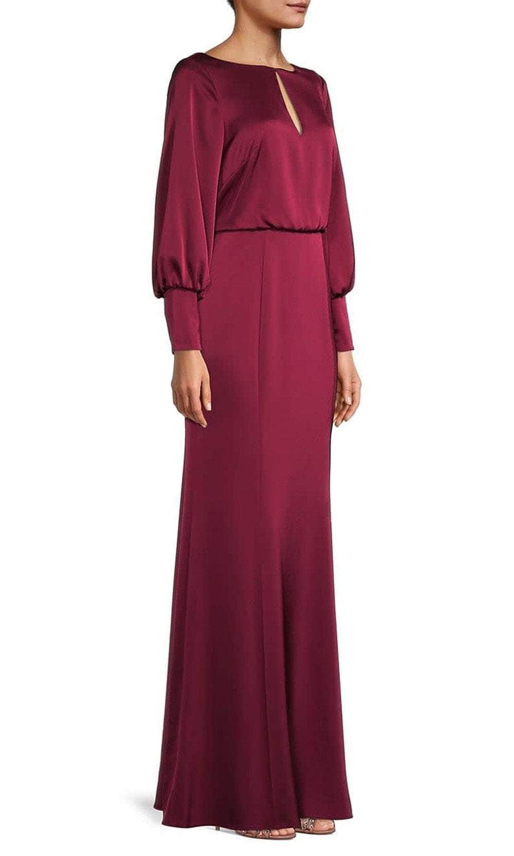 Introducing the Aidan Mattox MD1E207413 – a long satin dress perfect for any social occasion. Crafted from luxurious satin, this dress delivers an opulent feel you won’t find anywhere else. Boasting a boat neckline, with a keyhole front long sleeves, a blouson bodice, and a mermaid silhouette, this dress pairs a classic style with updated details for a timeless look. Whether you’re attending a formal event or a charity gala, the Aidan Mattox MD1E207413 is sure to turn heads. Model is wearing the Wine color.
