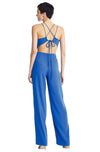 Be ready to catch everyones eyes in this style by Aidan Mattox MN1E204053. Fashions a sleeveless, dual strapped, halter neckline with back ties and an open back. The bottom is tailored in a pair of leg pants and has a zipper closure. Be strikingly gorgeous in Aidan Mattox. Model is wearing Blue color.