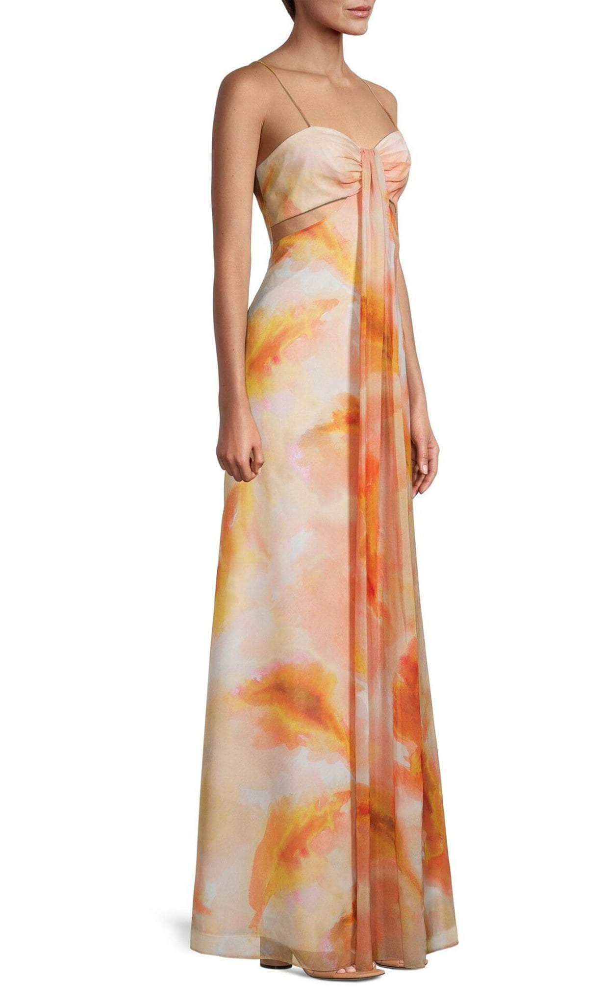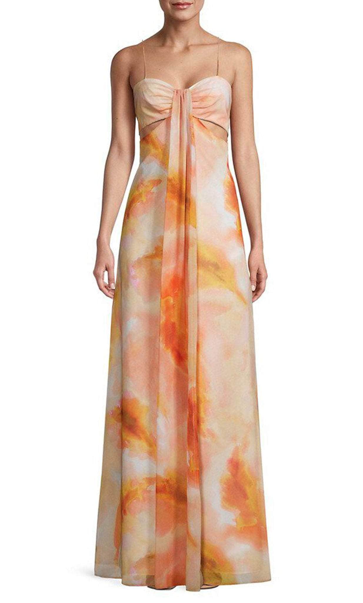 Make a splash with this Aidan Mattox MN1E207237. The sleeveless design and spaghetti straps are perfect for warm weather, while the front cape adds an elegant touch that flows effortlessly as you walk with a light train adds a touch of drama and sophistication, making it the perfect choice for a formal event. The sweetheart neckline creates a classic and romantic silhouette, while the back zipper ensures a seamless finish. If you are looking for that figure flattering then this Aidan Mattox MN1E207237 is the dress for you. Model is wearing Sunkist Coral.