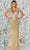 Stand out from the crowd with this Aleta Couture 1093, a radiant masterpiece, adorned with glistening sequins for an enchanting allure. The sleeveless fitted bodice, featuring a flattering V-neckline, exudes modern sophistication. A V-shaped back adds a touch of drama, while the floor-length skirt, parading in a column silhouette, gracefully concludes with a train. This fabulous gown seamlessly blends glamour with contemporary elegance, making Aleta Couture 1093 a captivating choice for those seeking a show-stopping ensemble for any special occasion. Models are wearing Champagne and Black colors.