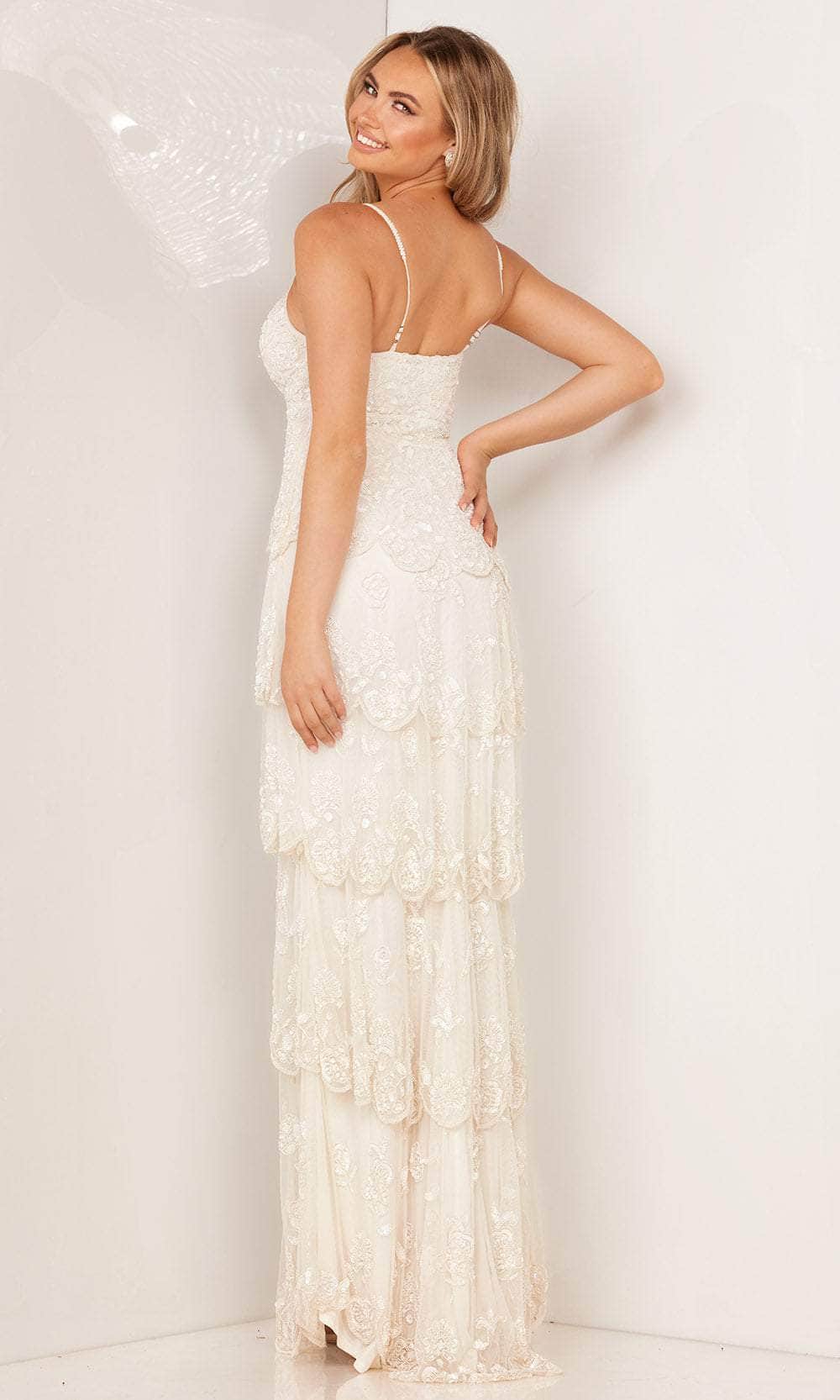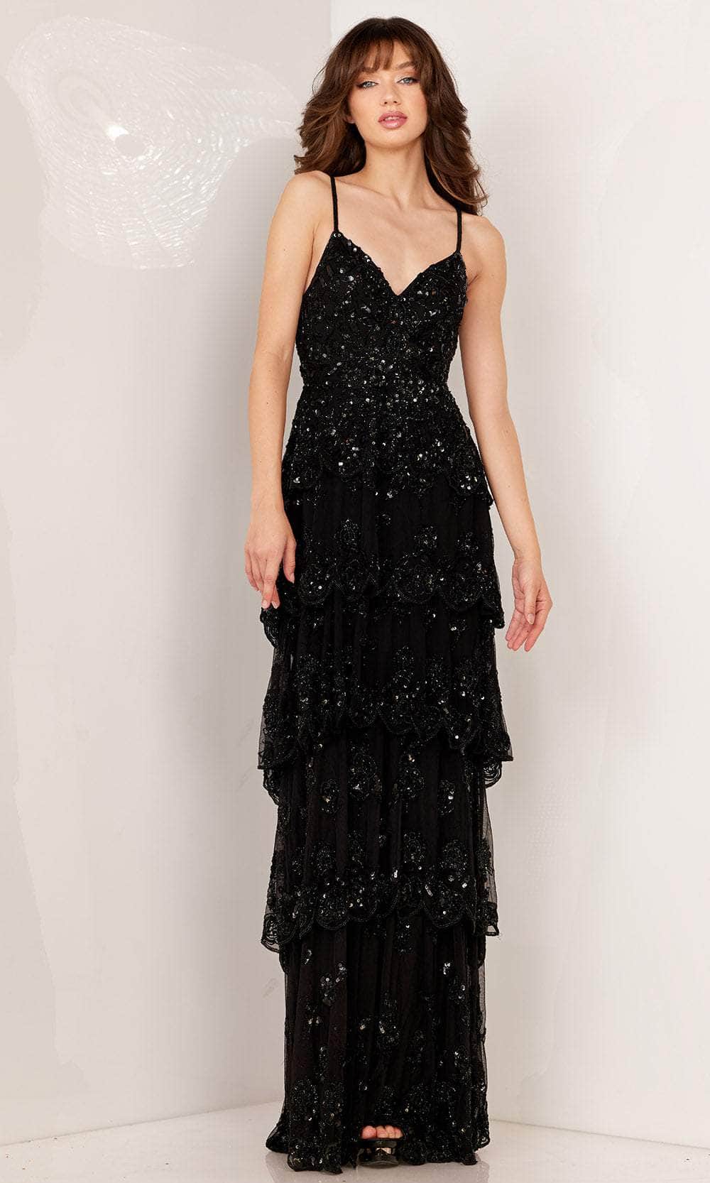 Evoke a sense of opulence with this Aleta Couture 119, a captivating masterpiece adorned with glamorous embroideries, beads, and sequins. The sleeveless fitted bodice and V-neckline, enhanced by adjustable spaghetti straps, radiate contemporary sophistication. The floor-length tiered skirt, in an A-line silhouette, gracefully parades, creating a stunning ensemble that seamlessly blends glamour and modern charm. Aleta Couture 1190 stands as a testament to refined elegance, offering a remarkable choice for those seeking a gown with timeless allure. Models are wearing Black and Ivory colors.