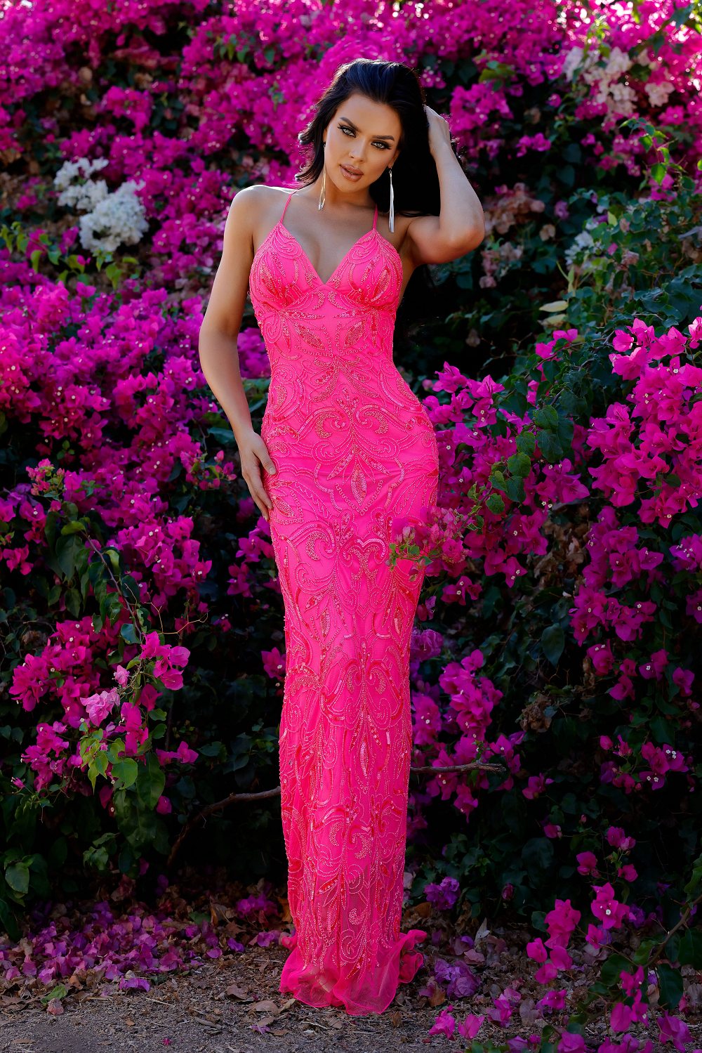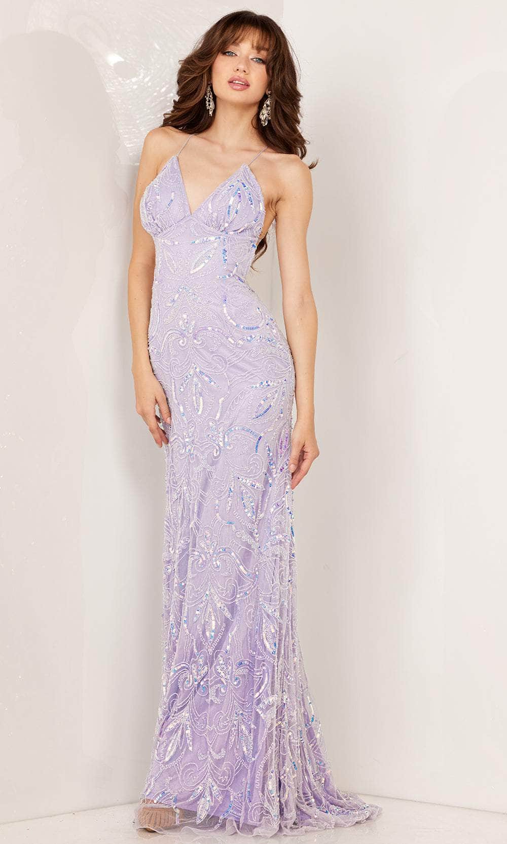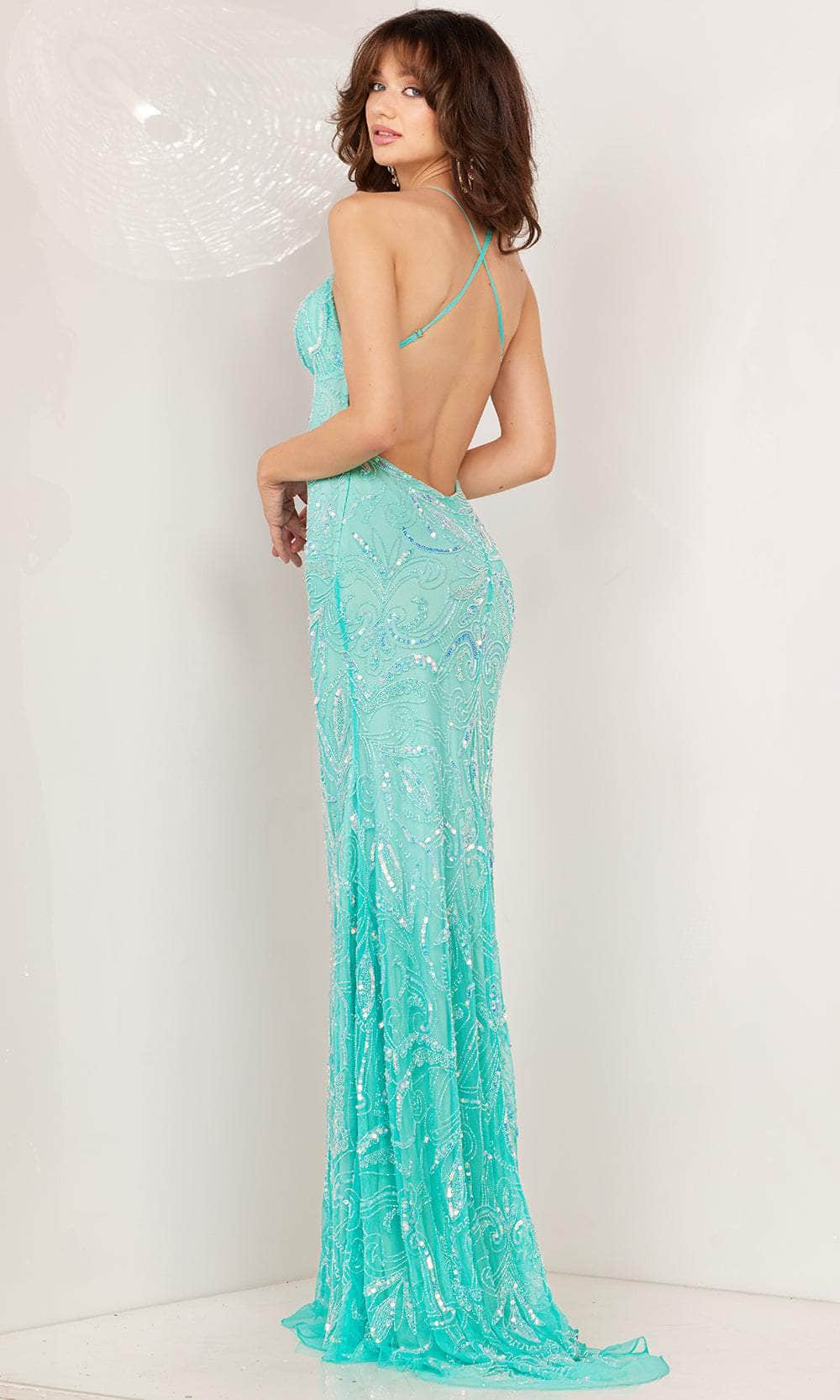 Experience a symphony of beauty and grace in the Aleta Couture 196 evening dress, a masterpiece that transcends mere attire. This exceptional garment features a mesmerizing V-neckline and delicate spaghetti straps, complementing the flattering sleeveless bodice flawlessly. The top boasts an elegant empire waistline, while the back showcases an alluring open crisscross pattern. Adorned meticulously with sequin embellishments throughout, this dress is a beacon of sophistication. Its sweeping train cascades down the refined sheath skirt, ensuring an entrance that commands attention and renders speech unnecessary as you make a stunning impact wherever you go. Make their gazes linger on you in this utterly fetching Aleta Couture 196 masterpiece!