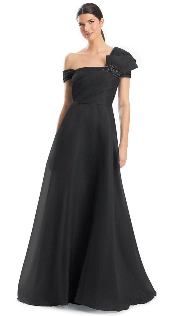 Enjoy classic elegance in this stunning ballgown by Alexander by Daymor 1985S24, which features exquisite pleated details. A fitted bodice with pleats and rhinestones on one shoulder is complemented by a straight-across neckline. A single off-the-shoulder sleeve gives it a sophisticated touch. The floor-length skirt ends in a train that falls gracefully, creating the illusion of a voluptuous ballgown silhouette. Accept the charm of this Daymor by Alexander 1985S24 ensemble, where every pleat and rhinestone comes together to create a breathtaking and unforgettable look for your special day. Models are wearing Black, Frappuccino, Lilac, Navy, Royal, and Slate colors.