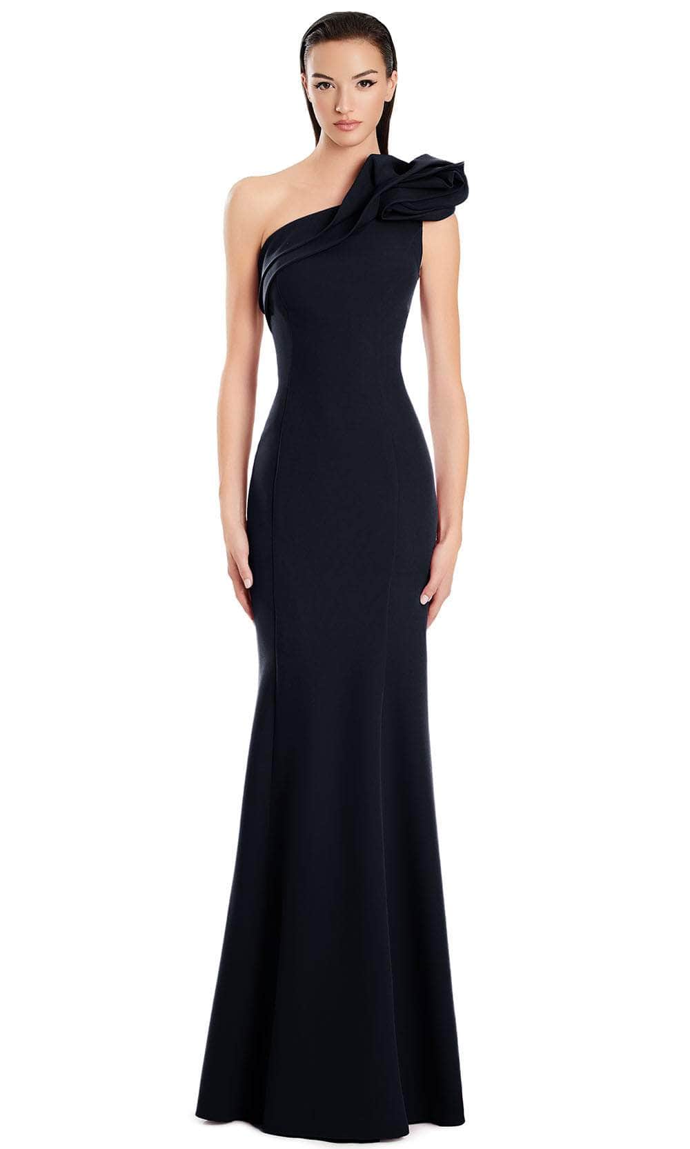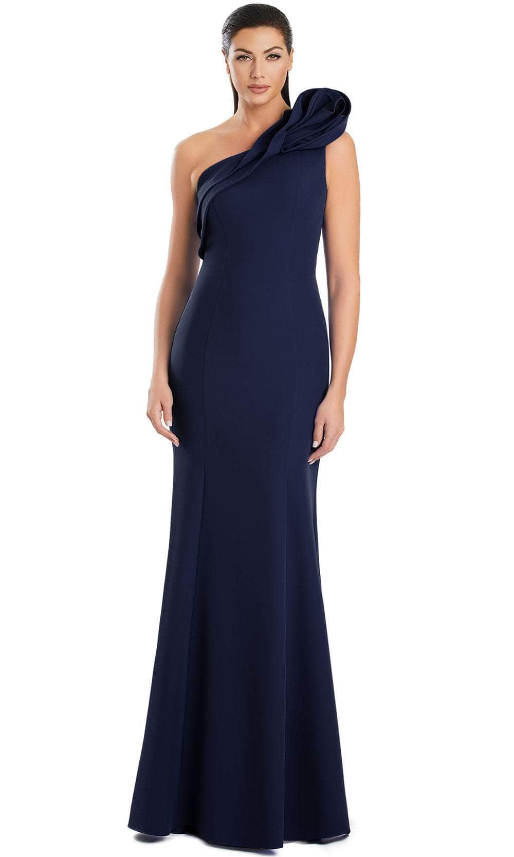 Make it your night worth reminiscing in this Alexander by Daymor 3076S25. The gown is the epitome of modern sophistication, featuring a striking asymmetric neckline and a sculpted bodice that contours the figure. The ruffled rosetted on the one shoulder brings a dramatic and statement-making look. The mermaid silhouette ensures a flattering fit and flows to the full length hem. The Alexander by Daymor 3076S25 masterpiece is an excellent choice for upscale events. Models are wearing Black, Blue, Emerald, Magenta, Navy, Navy/White, Peony, and Quartz colors.