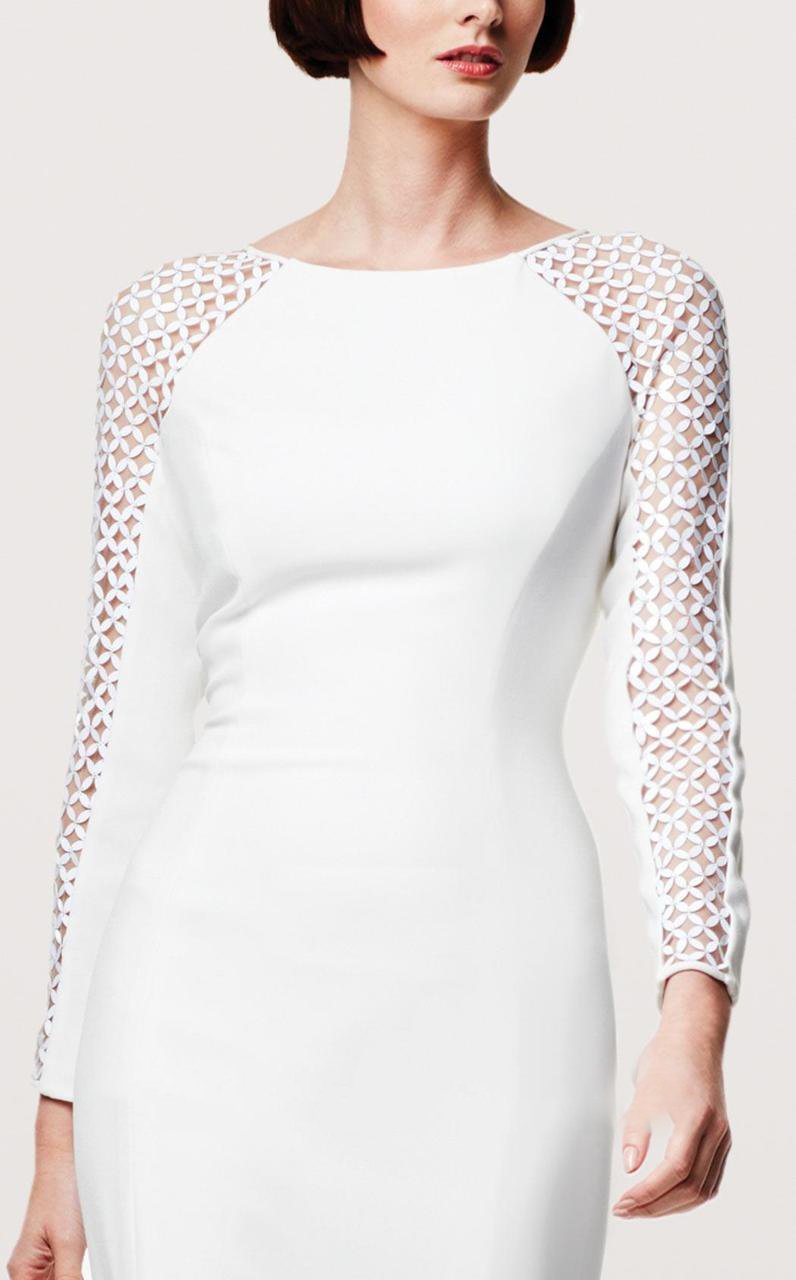 Details: Bateau, Diamond Long Sleeves Pattern, Mermaid Skirt, Back Zipper