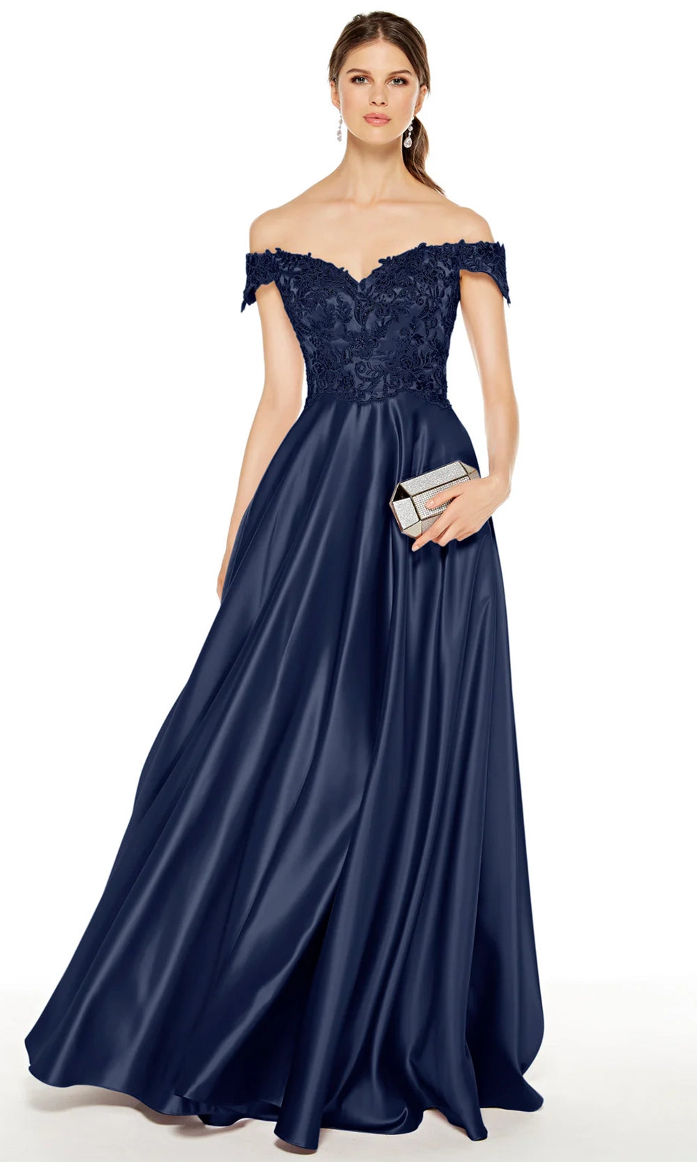 An inspired design, Alyce Paris 27393 style brings together drama and grace with masterful detailing. Featuring off-shoulder sweetheart neckline, embroidered lace bodice and silk satin A-line skirt, this gown creates an effortlessly fluid profile. Every curve and line is balanced by intentional accents that enhance its architectural elegance. The beaded embellishment offers just the right amount of shine, making it ideal for formal occasions. Choose Alyce Paris 27393 gown for a formalwear experience rooted in elevated styling and tasteful refinement. Models are wearing Cashmere Rose, and Navy colors.