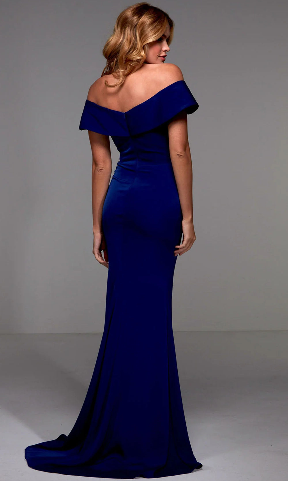 Stand out effortlessly in the Alyce Paris 27489 style that redefines sophistication with its striking design and refined structure. The off-shoulder fold detail brings graceful balance to the fitted bodice and elongates the neckline with elegance. A smooth sheath silhouette molds effortlessly to the figure and flows to the floor in a fluid cascade. The clean lines offer a tailored finish that celebrates simplicity with style. Designed for modern grace, Alyce Paris 27489 is an impeccable choice for anyone seeking timeless beauty with a contemporary edge. Model is wearing Cobalt color.