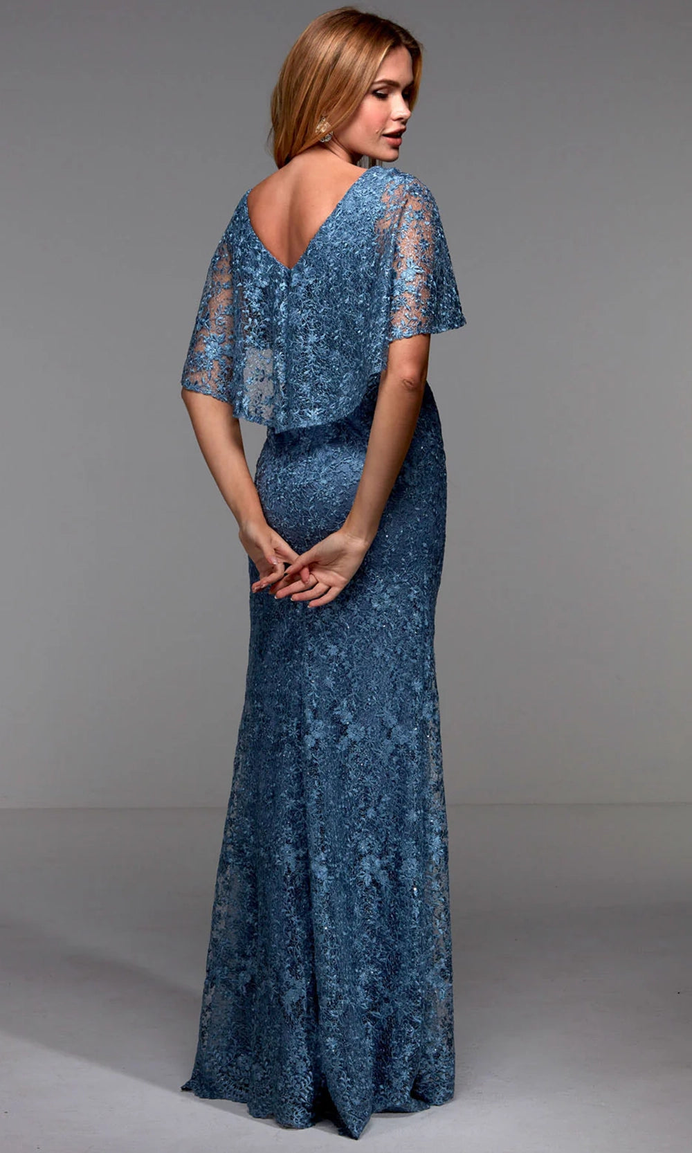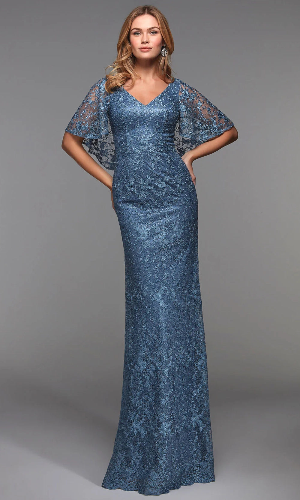 Evoke timeless sophistication with the refined elegance of Alyce Paris 27506. This long dress highlights a classic sheath silhouette enhanced by floral lace embroidery throughout. The cape-style sleeves offer graceful movement and modest coverage, while the soft V-neckline balances allure and elegance. Its fitted bodice gently tapers at the natural waist, complementing the figure with poise. Whether viewed up close or from afar, the dress detailing and elegant finish create a lasting impression. Alyce Paris 27506 is a thoughtful choice for those who seek grace with a hint of classic charm. Model is wearing Dark French Blue color.
