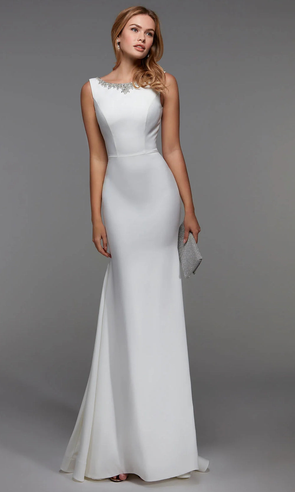 Step out with undeniable flair in this Alyce Paris 27538 gown made to elevate every moment. The sleeveless bodice is fitted to contour the torso, while the bateau neckline sparkles with crystal beading that adds dimension without excess. Its smooth faille construction drapes elegantly into a floor-length hem. Its midrise scoop back has invisible zipper closure for a secure fit. The sheath design holds close to the body, highlighting its natural shape with tasteful elegance. Alyce Paris 27538 style is a distinguished choice for anyone drawn to timeless beauty and precise tailoring. Models are wearing Black, and Diamond White colors.