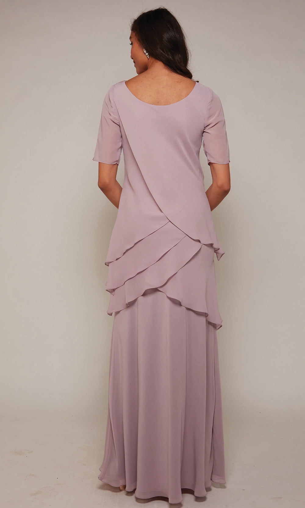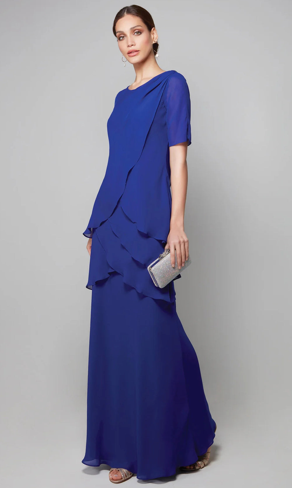 Alyce Paris 27593 offers a demure yet captivating look for women seeking grace without extravagance. Its scoop neckline frames the face gently, while the short sleeves provide comfortable coverage. Layered chiffon panels across the bodice and skirt lend soft texture and fluid motion. The sheath silhouette flows beautifully with tier design, accommodating movement while maintaining a tailored appearance. This gown simplicity is its strength, allowing fine details and gentle shaping to speak volumes. Turn to Alyce Paris 27593 for a refined presence at weddings, galas, or any special evening occasion. Models are wearing Cashmere Rose, Charcoal, and Cobalt colors.