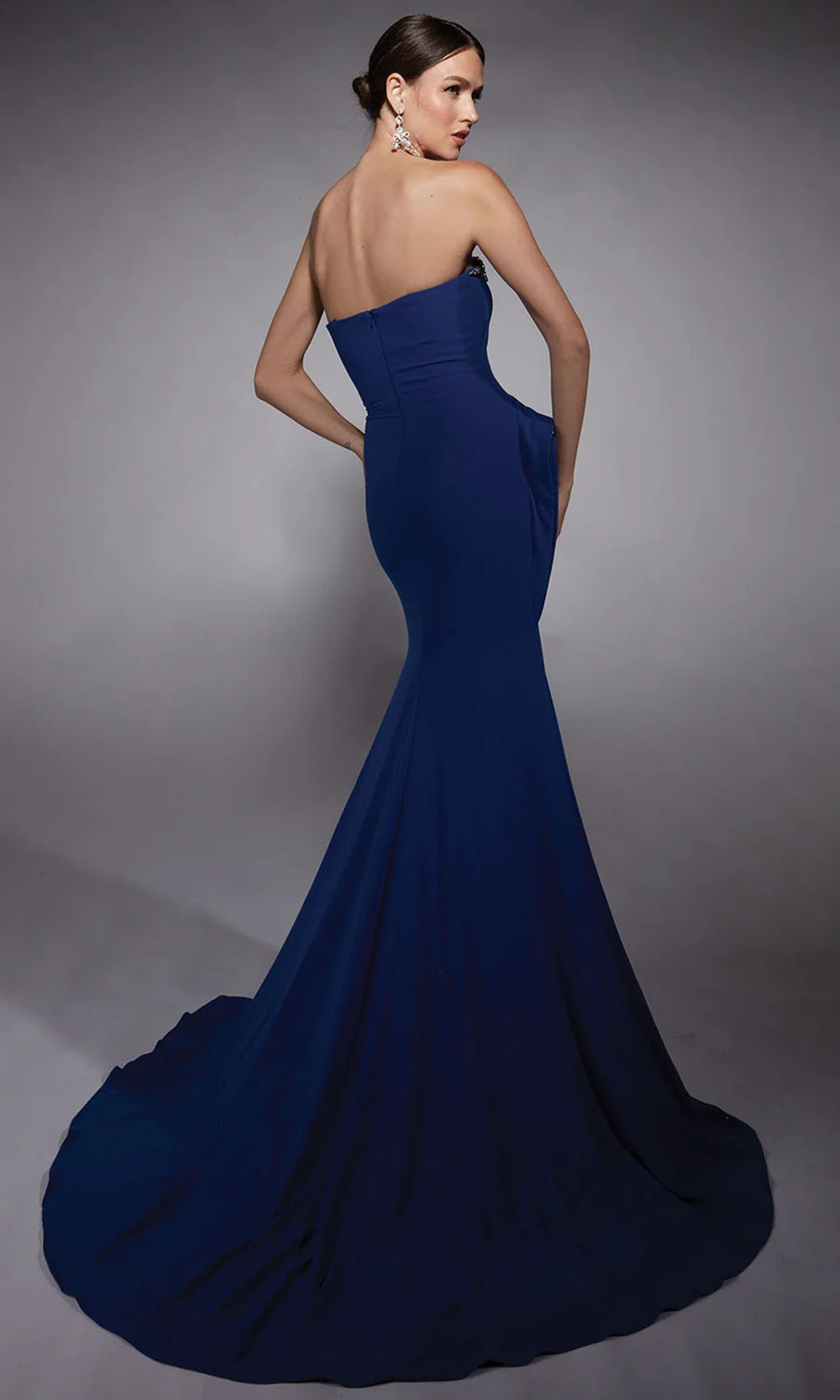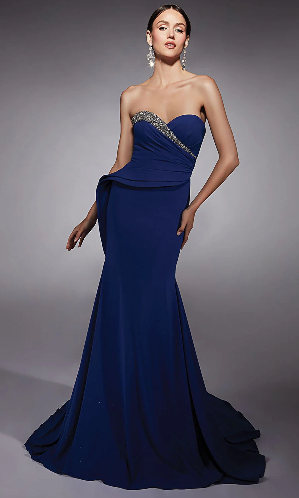 Embrace timeless beauty in the Alyce Paris 27739 design that defines classic grace. A strapless cut and sweetheart highlights your shoulders with grace. The ruched bodice is accented with a sparkling crystal beaded trim that curves along the bust, enhancing its elegant shape. A layered peplum adds drama, while the sleek trumpet silhouette flatters every angle. Alyce Paris 27739 style is a sophisticated choice that combines timeless glamour with a fresh, confident finish ideal for making a poised entrance at any formal affair. Model is wearing Royal color.