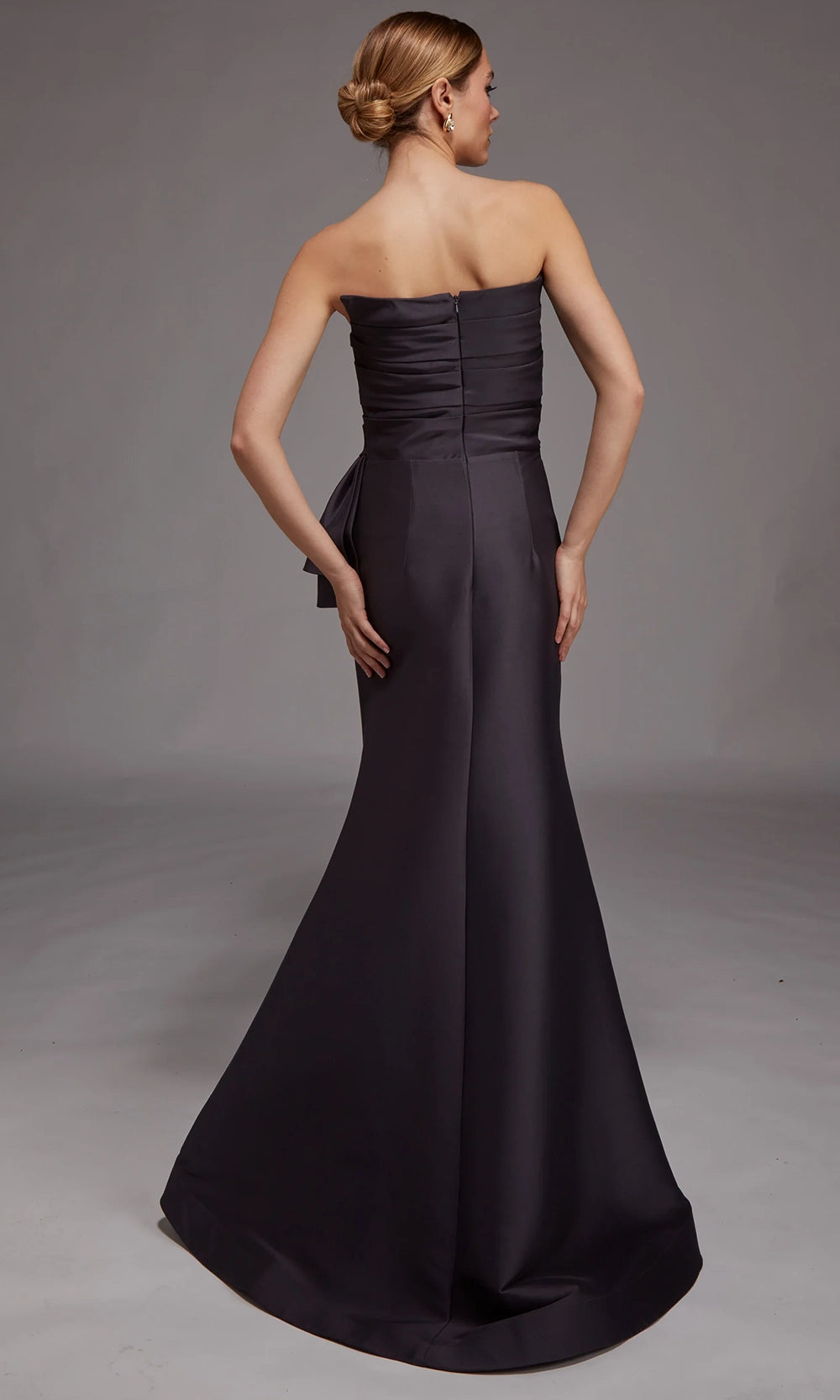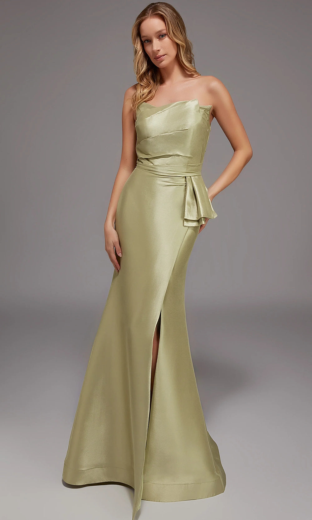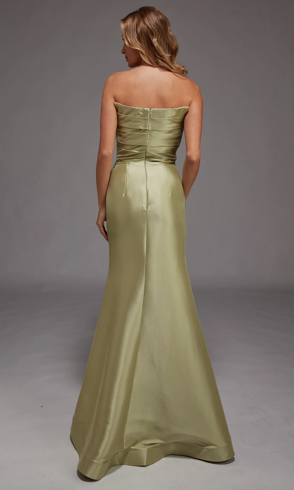 Alyce Paris Style 27806 is designed for the woman who appreciates refined glamour and sculpted elegance. The strapless neckline and asymmetrical pleated bodice create a structured and flattering finish, while the fitted mermaid silhouette highlights curves with sophistication. A beautifully placed side bow adds dimension and couture appeal, flowing seamlessly into a sweeping train for movement and grace. Perfect for formal celebrations, this look ensures poise and confidence. Make your grand entrance unforgettable in Alyce Paris Style 27806, a statement piece crafted for your most special occasions. Model is wearing Charcoal and Honeydew colors.