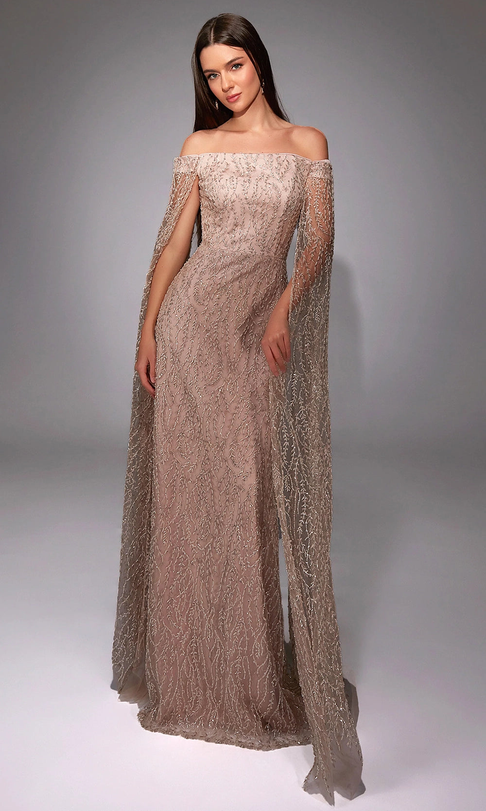 Alyce Paris Style 27821 introduces a breathtaking evening gown designed to turn heads at any celebration. The off shoulder neckline delivers timeless elegance, while the cape sleeves create a flowing, regal effect with every movement. Intricate beadwork covers the fitted silhouette, adding texture and sparkle from bodice to hem. This floor length style effortlessly elongates the figure and creates a luxurious, polished finish. Choose Alyce Paris Style 27821 for your next special event and feel extraordinary in a gown crafted to leave a lasting impression. Model is wearing Sultry Blush color.