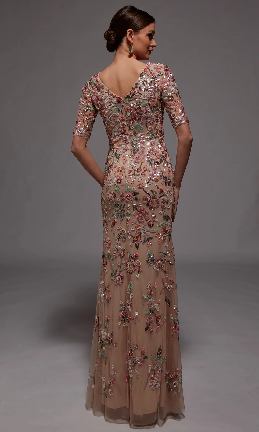 Elegance meets artistry in this Alyce Paris 27848 gown, designed for the woman who loves refined glamour. Its fitted silhouette showcases intricate beaded floral applique that trails across the entire dress, creating a garden-inspired masterpiece. Sheer illusion sleeves and neckline add sophistication while allowing the embellishments to shine beautifully. The back detail provides a delicate finishing touch, adding interest as you move. Step into your next celebration in Alyce Paris 27848, a stunning choice for weddings, galas, and unforgettable evenings. Model is wearing Champagne-Blush color.