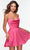 Look amazing for the party in this Alyce Paris 3114 creation. This striking dress charms in a sleeveless cowl neckline and is held by thin shoulder straps that lead to the low open back, forming a dramatic strappy lace-up design. Crafted in satin chiffon fabric, the flowy skirt flares a beautiful A-line silhouette that runs in a short hemline. A zipper closure at the lower back and side pockets completes this dress look. This Alyce Paris design will definitely make you feel special! Models are wearing the Hot Pink and Red colors.