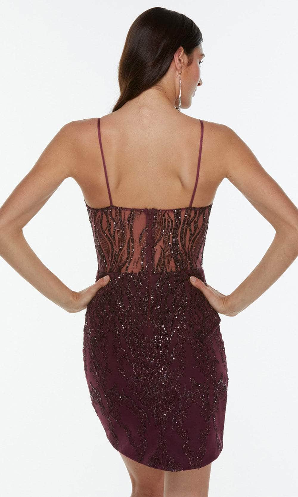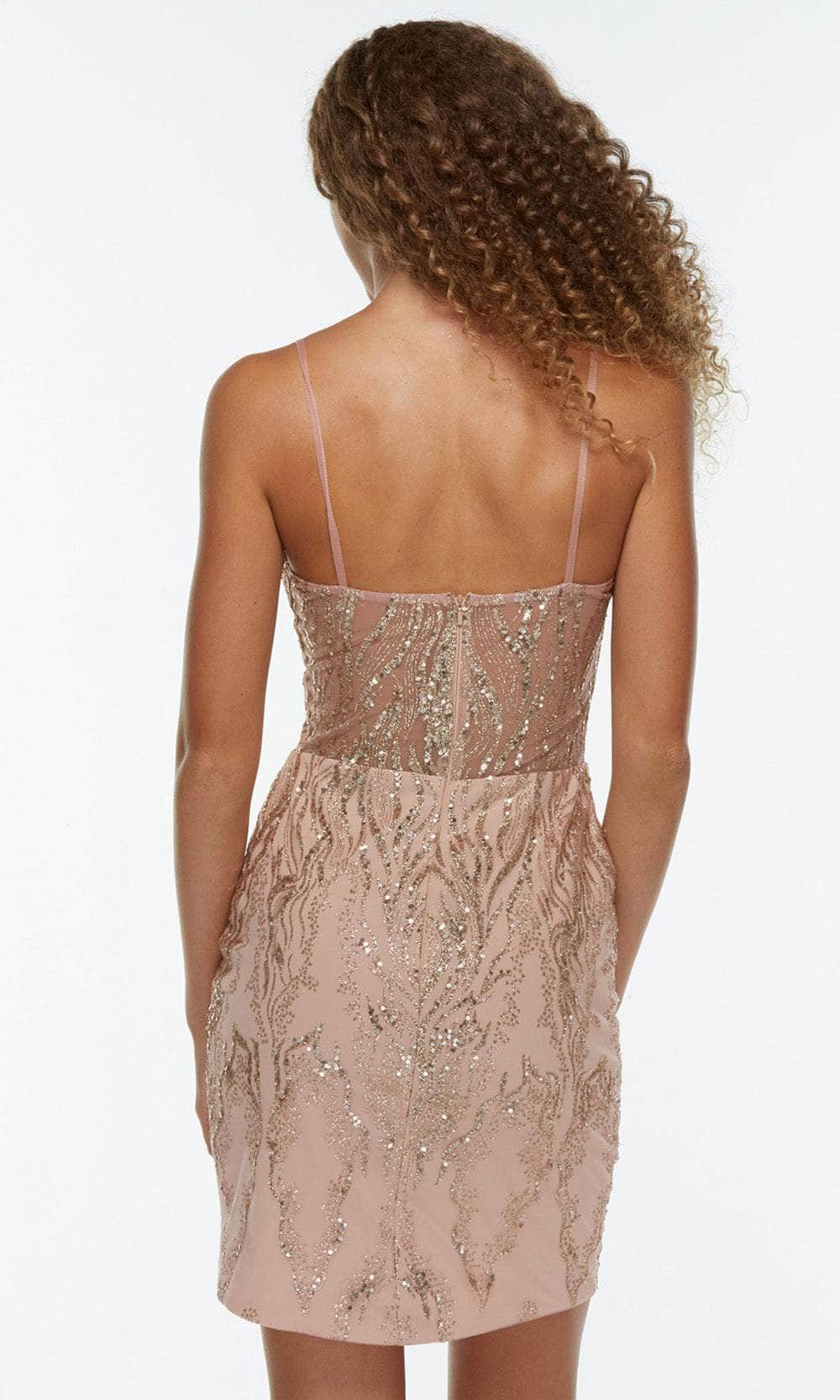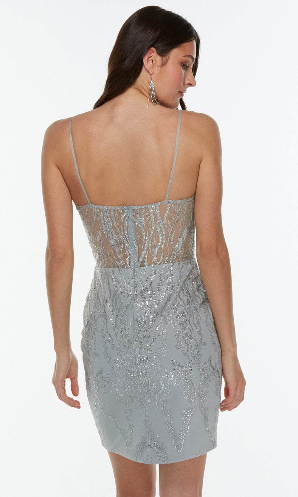Steal the show in this dazzling Alyce Paris 4358 cocktail dress. Designed in a rich glitter tulle fabric with sparkling sequins embellishment, this chic form-fitting dress boasts a sleeveless bodice with V-neckline, spaghetti straps and an illusion mid-open back. The skirt creates a sheath silhouette that flows down to a short hemline. Unleash an inner glamour that attracts all eyes on you in this Alyce paris masterpiece. models are wearing the Black, Raspberry, Sand, Silver and Wine colors.
