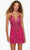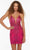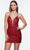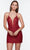Get ready to show off your glamorous side in Alyce Paris 4513 creation. This tulle dress mesmerizes in a sleeveless slim-fitting bodice fully ornate with glitters and sequins. It features a sheer inset plunging V-neckline supported by spaghetti straps leading along the back that is matching with three straps, forming a strappy design. The skirt forms a short length sheath silhouette that hugs your figure. Look fashionably chic and fabulous in this playful cocktail dress by Alyce Paris. Models are wearing the Claret, Navy and Raspberry colors.