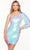 You will be the envy of the night in this amazing short dress with striking details by Alyce Paris 4609. This breath-taking dress is beautifully adorned with iridescent sequins in a foliage motif on the fitted bodice. It shows an asymmetric neckline, a one-shoulder cuffed sleeve and a slanted mid-open back. The fitted skirt runs into an alluring short hem, while the back is secured with a concealed zipper for a secure fit. This Alyce Paris masterpiece is awesome for prom or for any special night event! Model is wearing Magic Opal color.