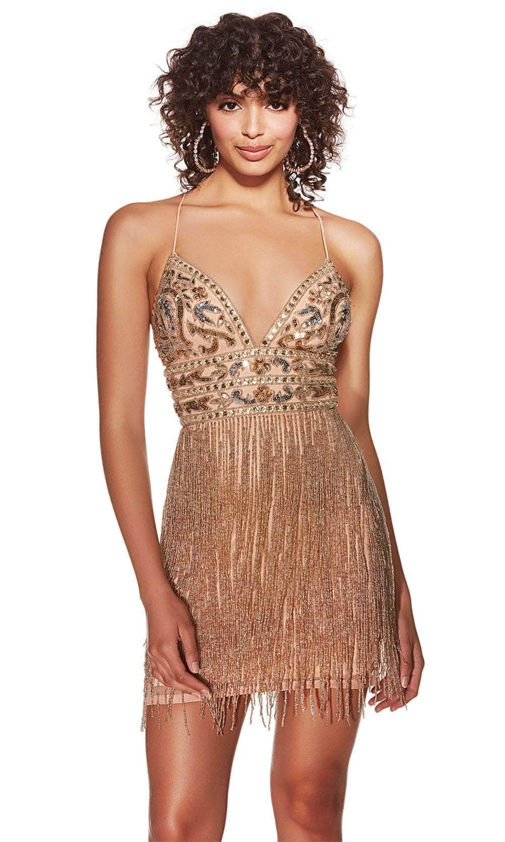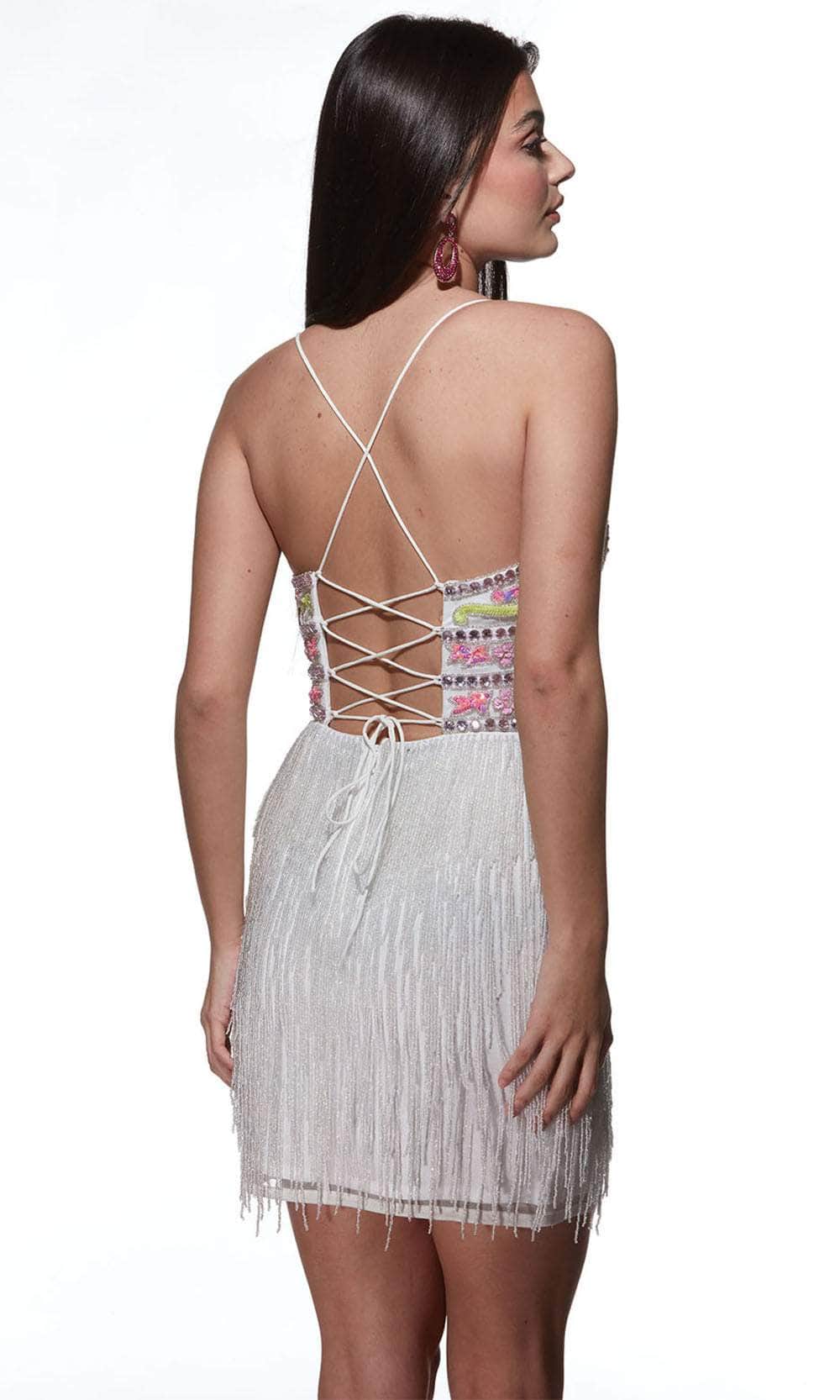 Alyce Paris 4801 - Deep V-Neck Fringed Cocktail Dress