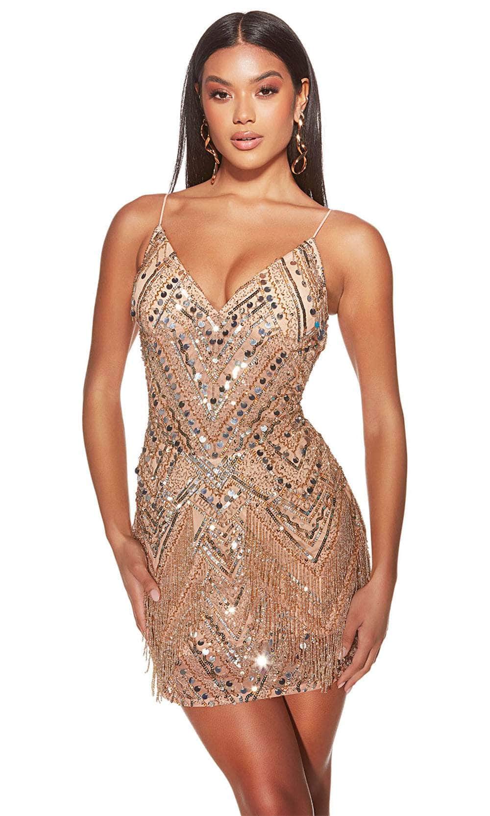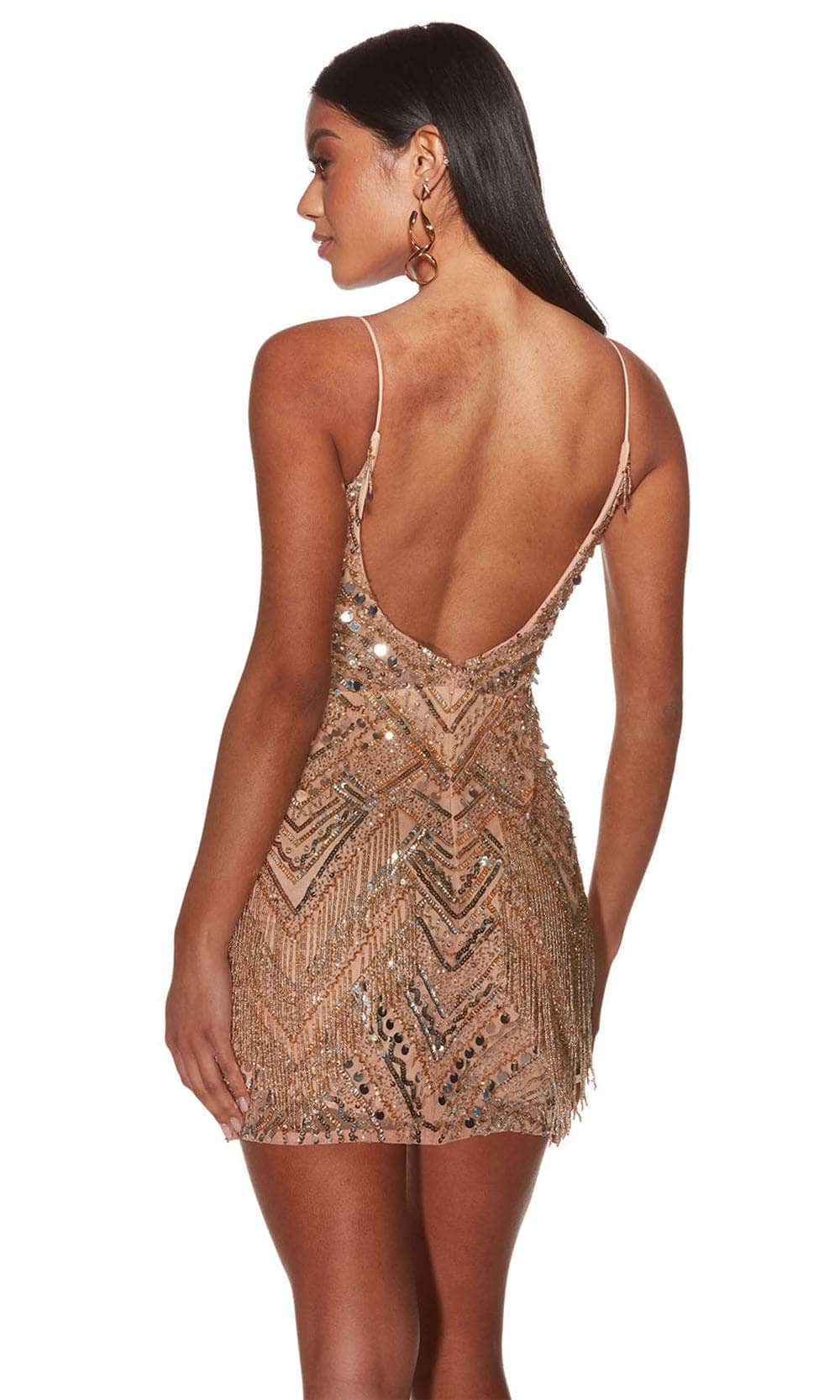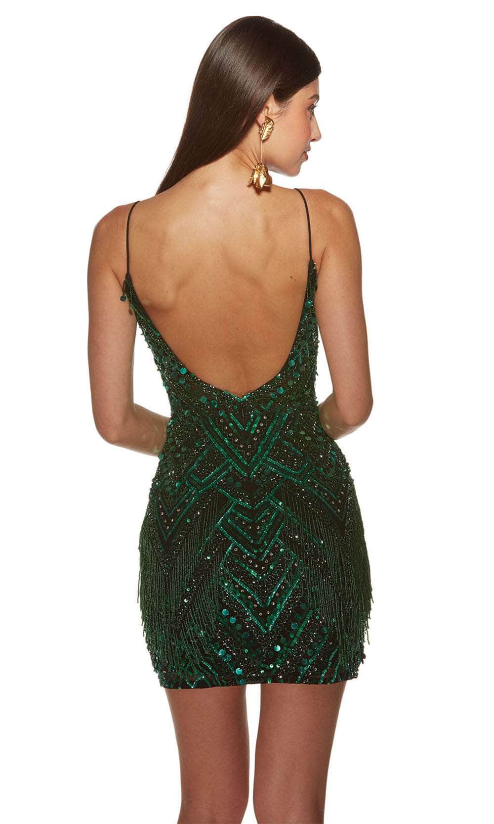 Make a bold statement with this stunning Alyce Paris 4802, crafted with a dazzling combination of sequins and beads. The sleeveless fitted bodice highlights your figure with a flattering V-neckline that flows into an elegant open back, adding a touch of modern sophistication. A concealed zipper closure ensures a secure and tailored fit, while the short sheath silhouette skirt, adorned with playful fringes, adds dynamic movement with every step. Perfect for any special occasion, this Alyce Paris 4802 will have you turning heads all night long. Models are wearing Bisque and Black Emerald colors.