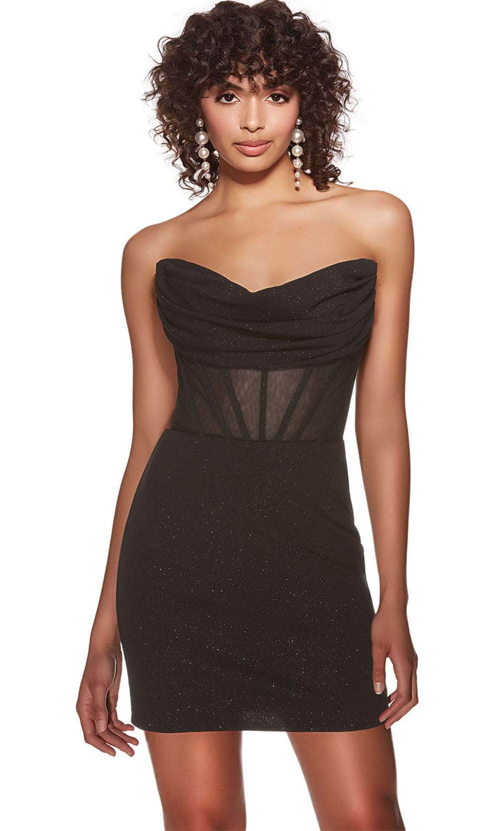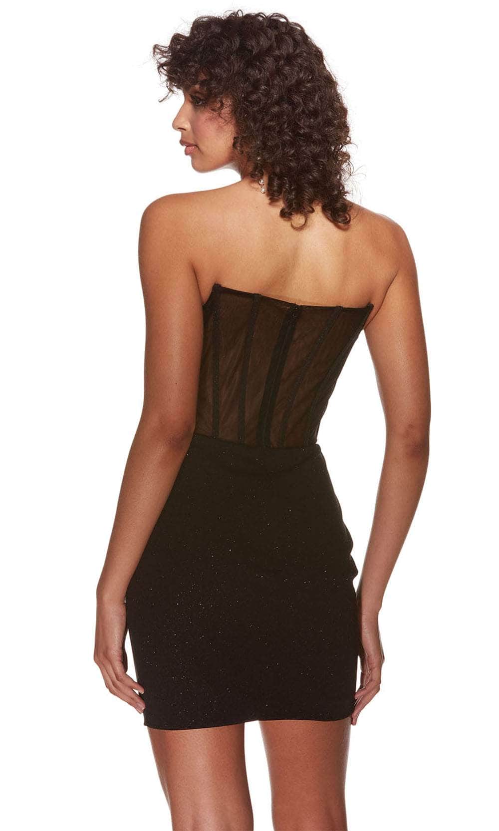 Elevate your evening look with this breathtaking Alyce Paris 4819 masterpiece, featuring a sheer corset bodice that perfectly contours your figure. The sweetheart neckline enhances the romantic vibe, while the detachable off-shoulder straps offer versatile styling options. A concealed zipper closure ensures a secure and sleek fit, complementing the short sheath silhouette skirt that hugs your curves beautifully. This stunning Alyce Paris 4819 combines elegance and modern charm, making it an ideal choice for any special occasion where you want to captivate with grace and sophistication. Model is wearing Black color.