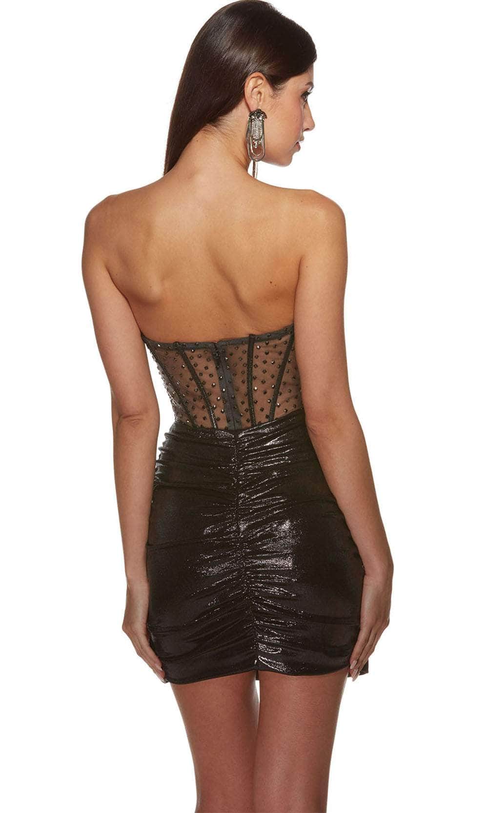 | Details: | Ruched Details, Sheer Corset Bodice, Back Zipper Closure |