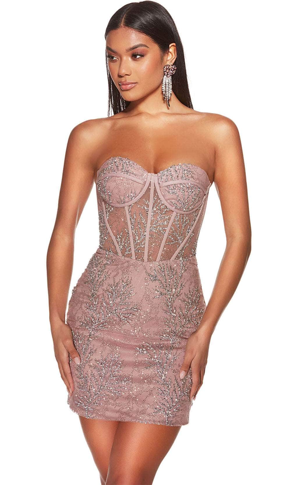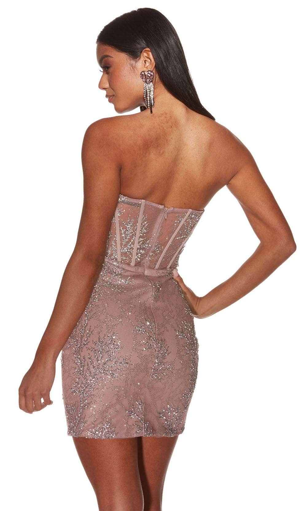 Shine with elegance and confidence in this glittering Alyce Paris 4865, a strapless dress. Featuring a sheer corset bodice for a structured yet sultry look, this dress flaunts a romantic sweetheart neckline that perfectly frames your figure. Glitter embellishments throughout the design add a radiant sparkle, while the back zipper closure ensures a secure, flawless fit. The short-length sheath silhouette skirt enhances your curves, Alyce Paris 4865 creating a chic and sophisticated look that is ideal for glamorous events or nights out. Model is wearing Sultry Blush colors.