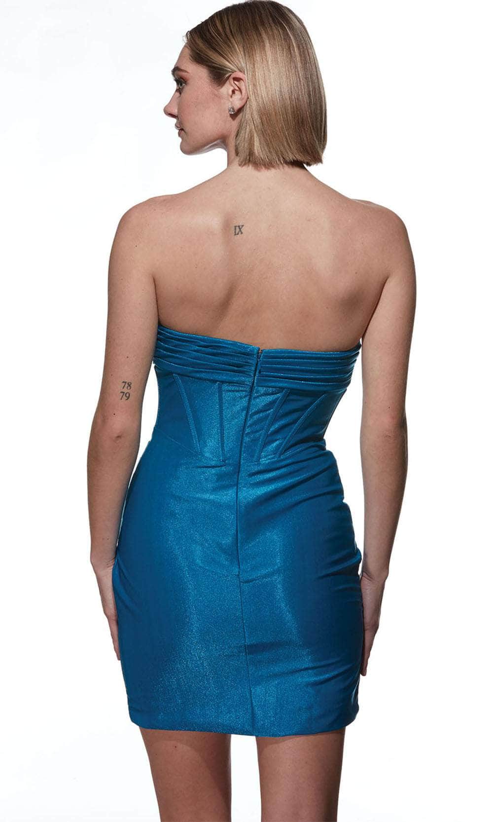 Turn up the heat on your special night with the stunning Alyce Paris 4921 masterpiece. This outfit designed with a corset boning bodice offers a flattering and structured look. The soft ruching and a crisscross detailing on the sweetheart neckline exude magnetic charm. The tulip hem gives the sheath skirt a modern twist, while the mid-thigh length showcases your elongated legs. Enhancing the look is a low-cut open back, secured by a concealed zipper to keep everything in place. Impress the crowd by accentuating your finest attributes in this Alyce Paris 4921 dress. Models are wearing Barbie Pink, Ocean, Royal, and Emerald colors.