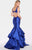 | Details: | Sleeveless, Fitted, Thin Straps, Seamed Bodice, Sheer Inset Detail at the Bust, Ruffled Skirt, Floor Length, Back Cutout, Back Zipper Closure, Sweep Train |