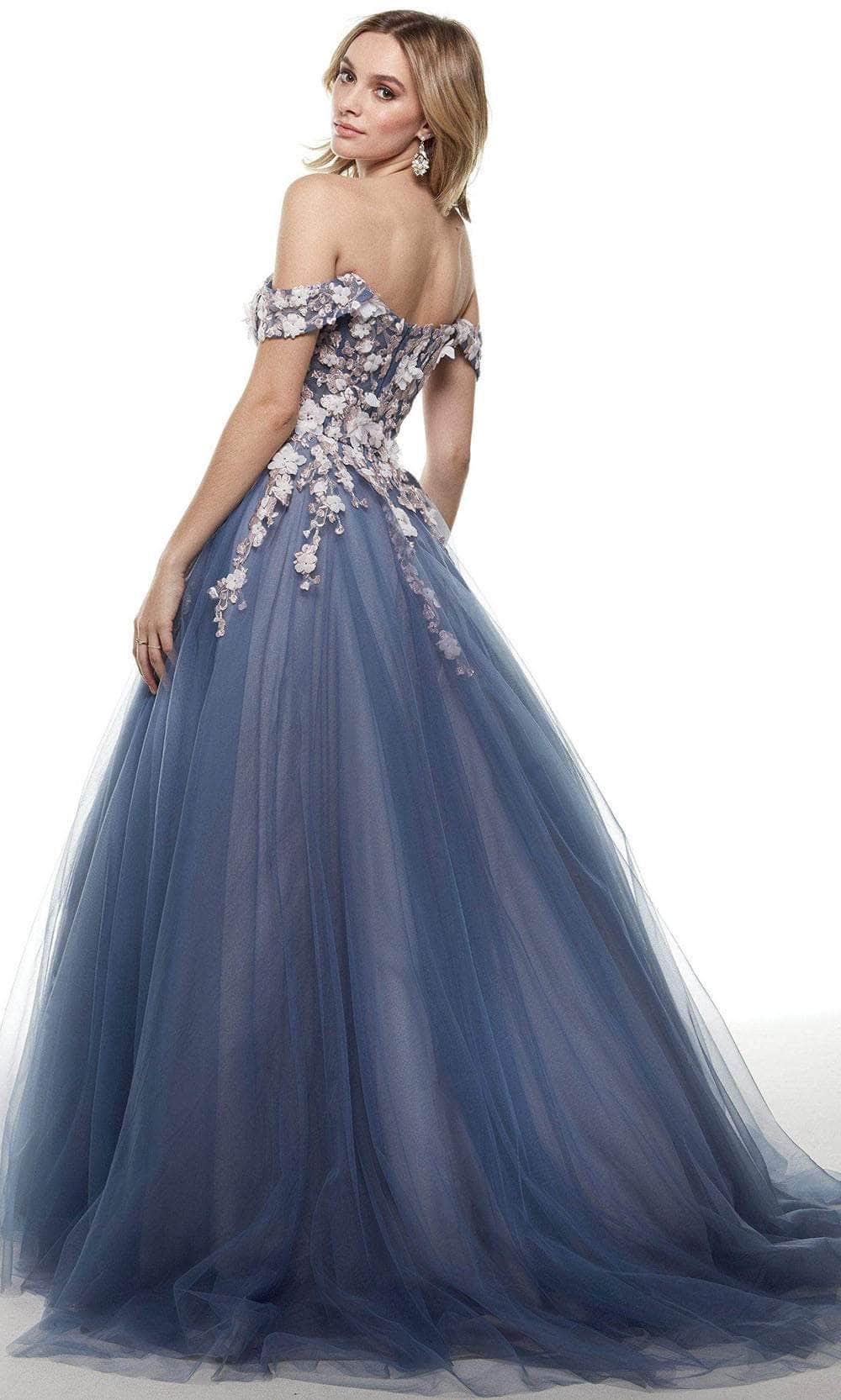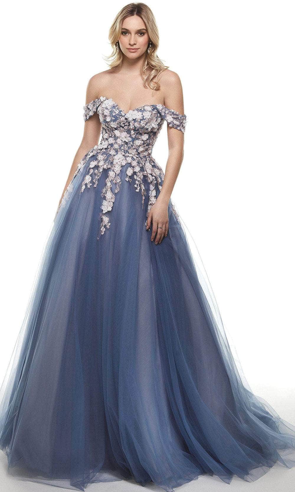 Get glamorous underneath the modern and classic detailing on this stunning Alyce Paris 61017 creation. Lavishly ornate with beautiful floral appliques over the fitted bodice and graciously cascades down to the hips, this gorgeous piece stuns in an off-shoulder sweetheart neckline with a mid-open back and it is secured with a zipper closure. The voluminous skirt flows down beautifully in a floor length hem with a brush of train. This Alyce Paris masterpiece is sure to be an attention-grabber in any occasion. Models are wearing Ivory/Pink Champagne and Storm Cloud/Pink colors.