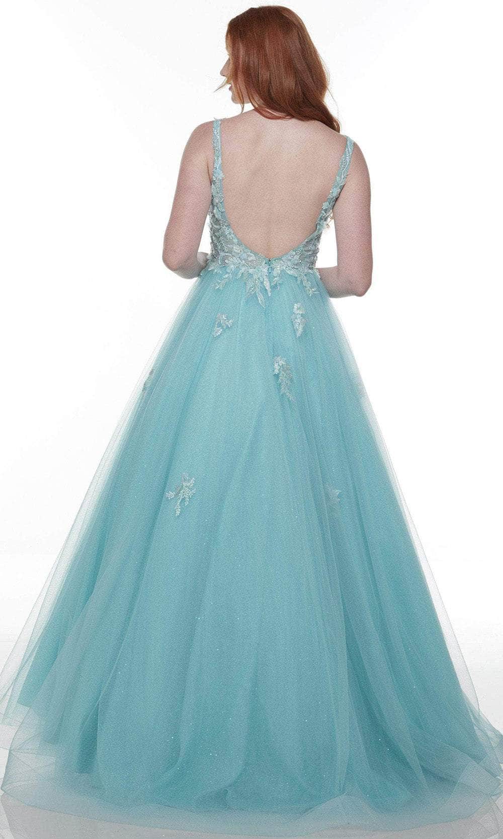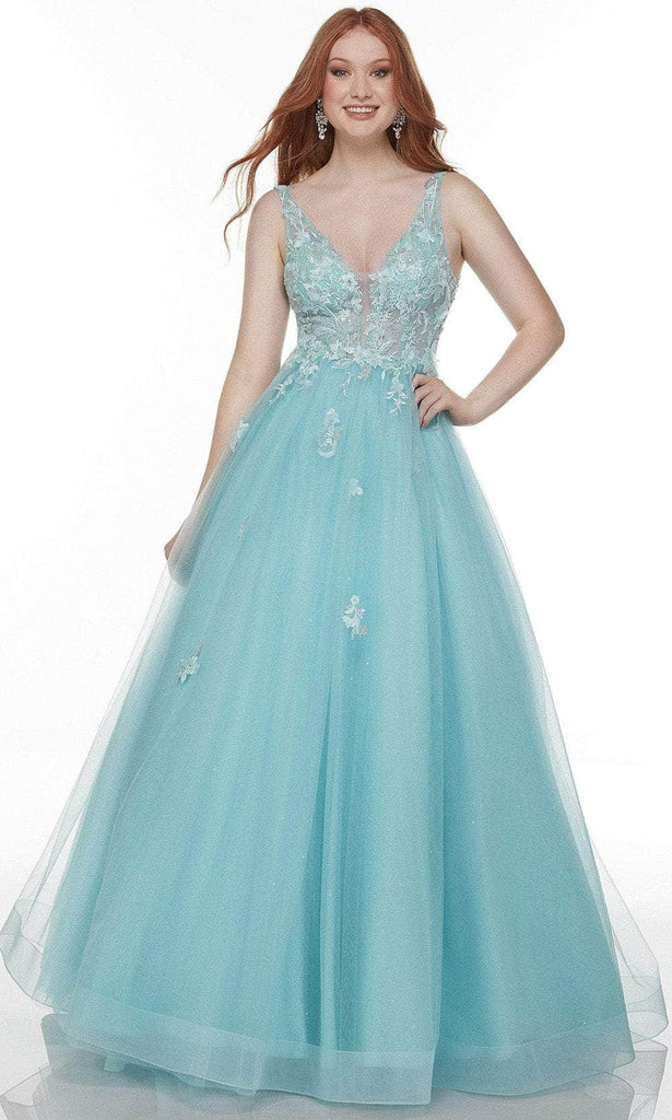 This stylish design from Alyce Paris 61105 will always make a statement. With this magnificent floral applique embellished gown on, exude beauty from the inside out. From the fitted bodice to the sleeves floral appliques are adorned. The plunging V-neckline is highlighted with sheer in the bust. The skirt parades in a ballgown silhouette with a sweep train The back is featured in V-shaped back zipper closure to fasten. It's fascinating what Alyce Paris came up with! Model is wearing Pool color.