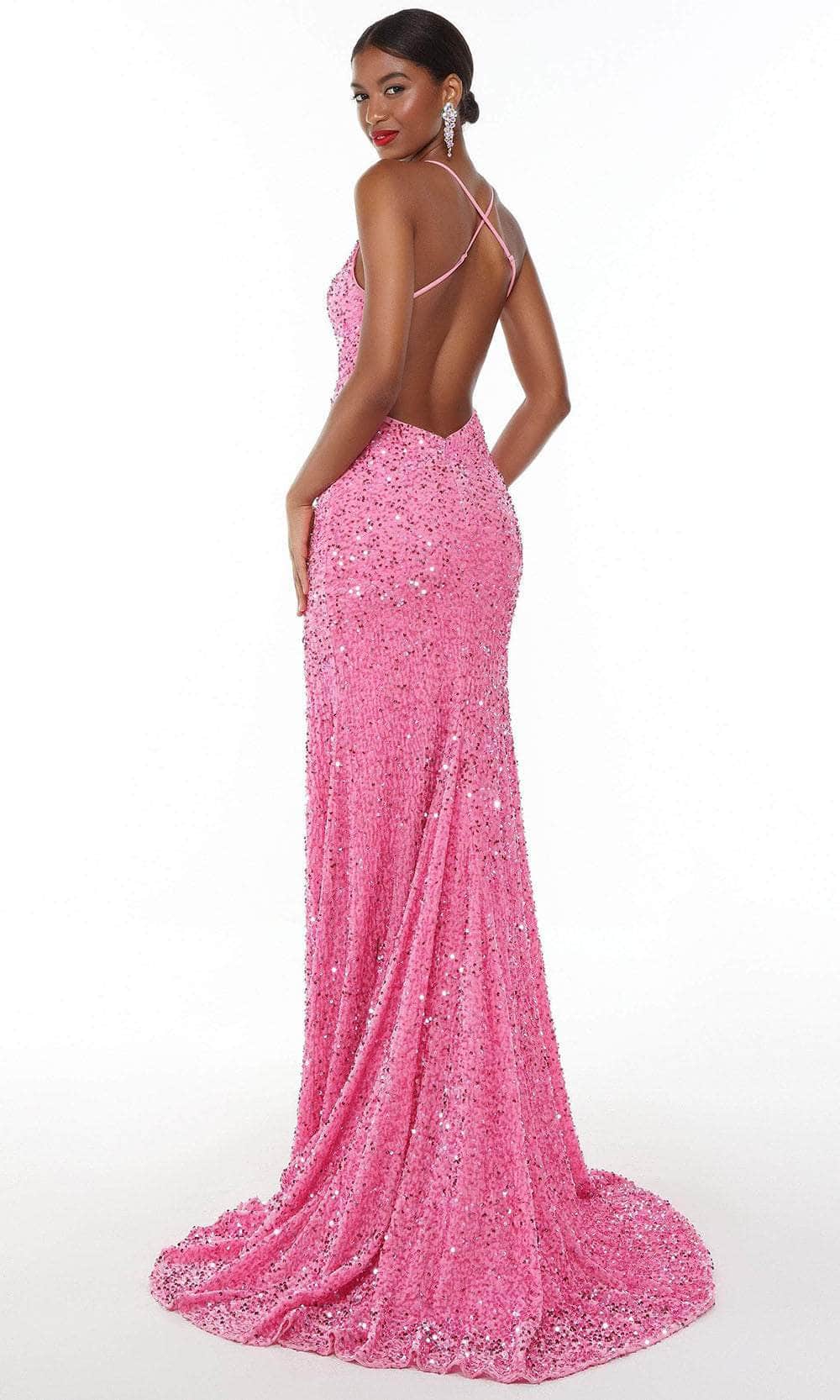 You are more than gorgeous when you wear this unbeatable creation from Alyce Paris 61254. This lovely gown is attractively tailored in a plush sequined fabric, featuring a plunging neckline, V-notch, and an alluring low-cut open back with zipper closure. Crown-worthy, this pageant gown flaunts a fitted skirt that softly flares at the bottom with a thigh-high slit so you can walk freely, and a sweeping train for a dramatic exit. This Alyce Paris gown is specially designed to make that special occasion worth reminiscing about. Model is wearing Bubblegum Color.