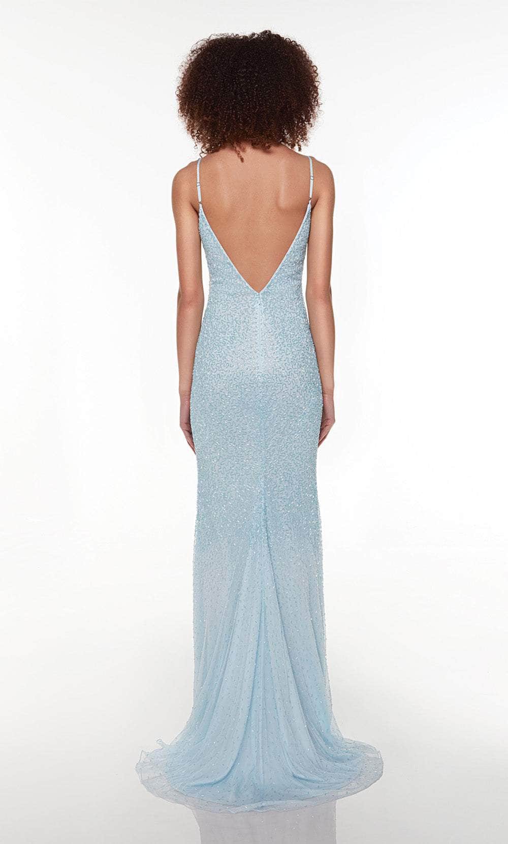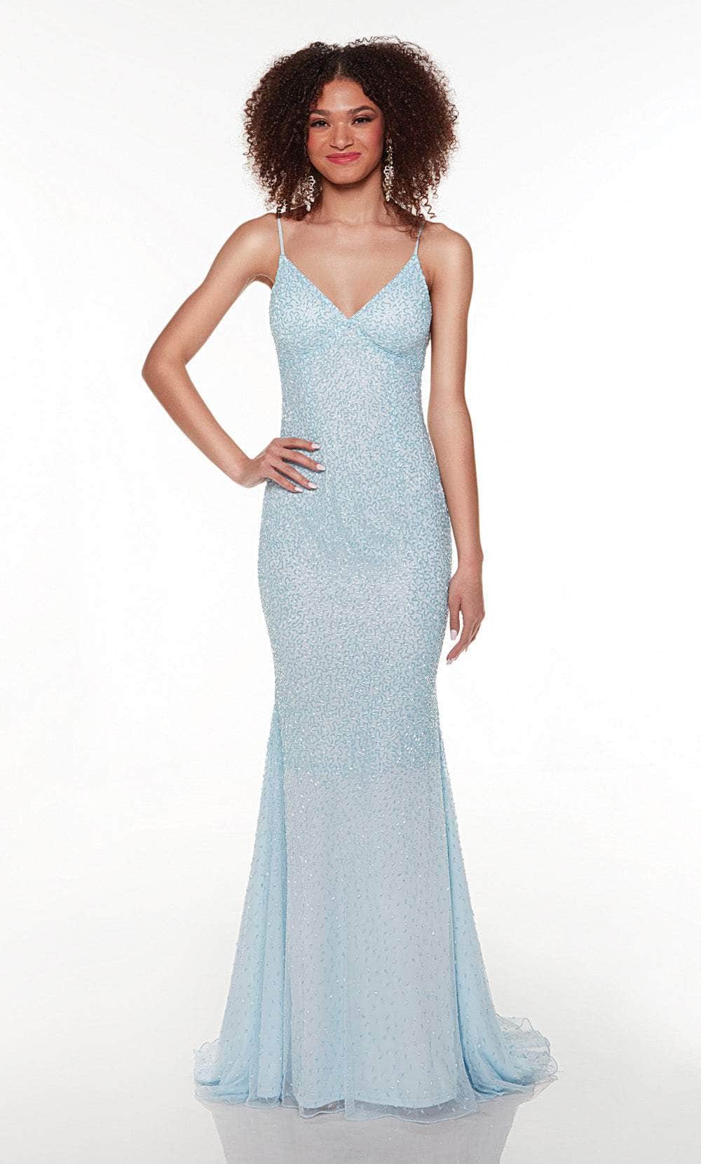 You will be the envy of the night in this amazing long gown with striking details by Alyce Paris 61281. Fascinatingly festooned with beadwork all-over its length, this sleeveless dress features a deep V-neckline, adjustable spaghetti straps and a low V-shaped back secured by a center zipper closure. The tulle skirt flourishes a full length sheath silhouette and it flares a gorgeous sweeping train. The night is yours in a spectacular creation from Alyce Paris. Model is wearing the Powder Blue color.