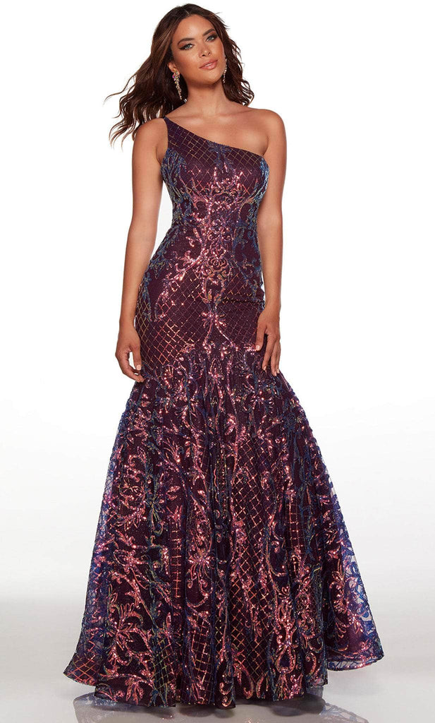 Expect to be turning heads as you walk into your special event wearing this creatively romantic gown by Alyce Paris 61421. Showcasing a beautifully tailored trumpet silhouette promoting an hour-glass figure to the wearer. Opens with one shoulder strap on an asymmetric neckline and fitted bodice. Lattice and floral patterns are visible using sequin appliques throughout the ensemble. Back is exposing some skin and showing a complex strappy design. This Alyce Paris 61421 will definitely bring out the goddess in you! Model is wearing Dragon Scale color.